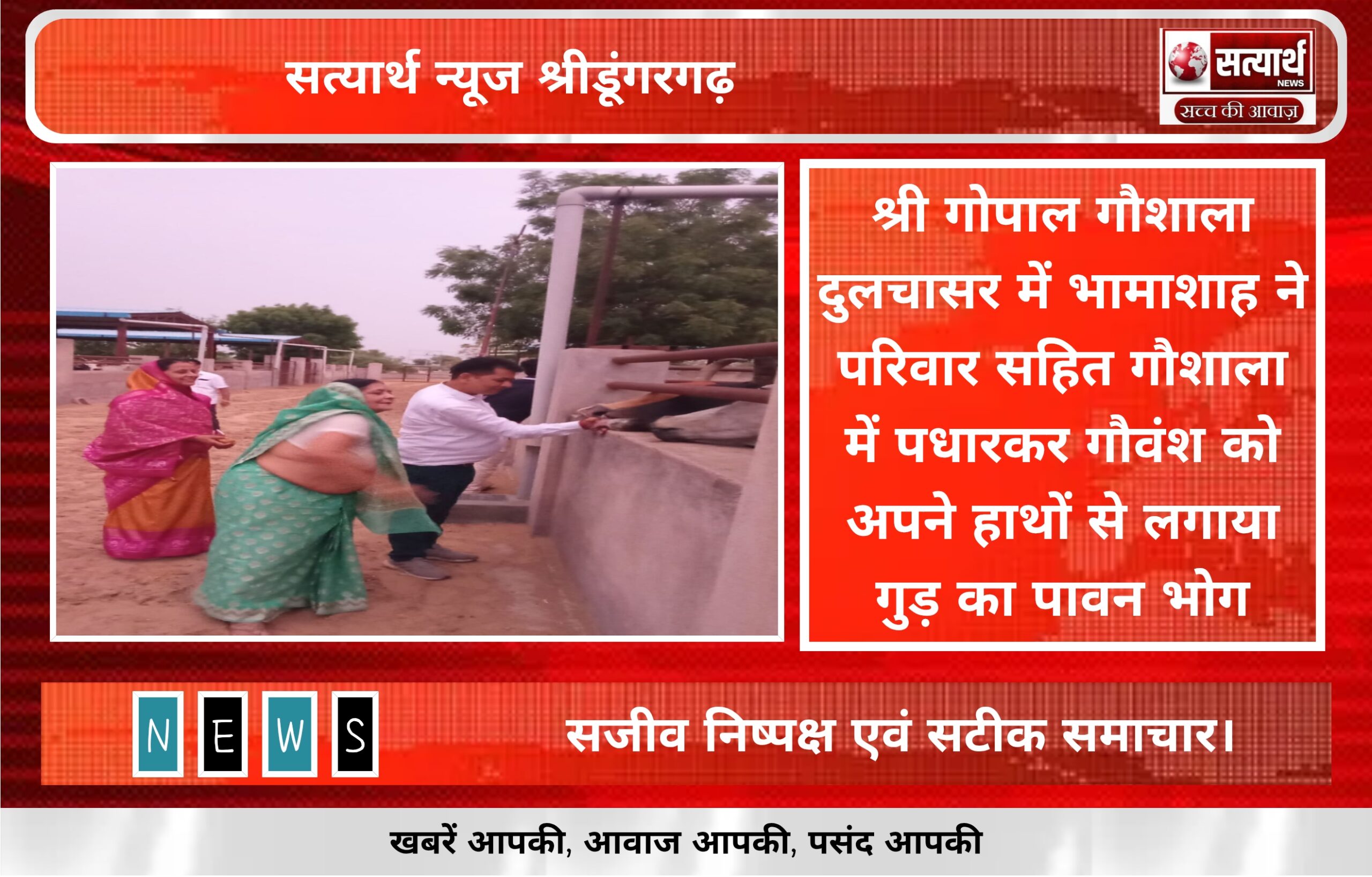 सत्यार्थ न्यूज श्रीडूंगरगढ़-सवांददाता ब्यूरो चीफ श्री गोपाल गौशाला दुलचासर में आज केशरी चन्द भैरुदान जगदीश प्रसाद मुंधड़ा निवासी दुलचासर प्रवासी…
