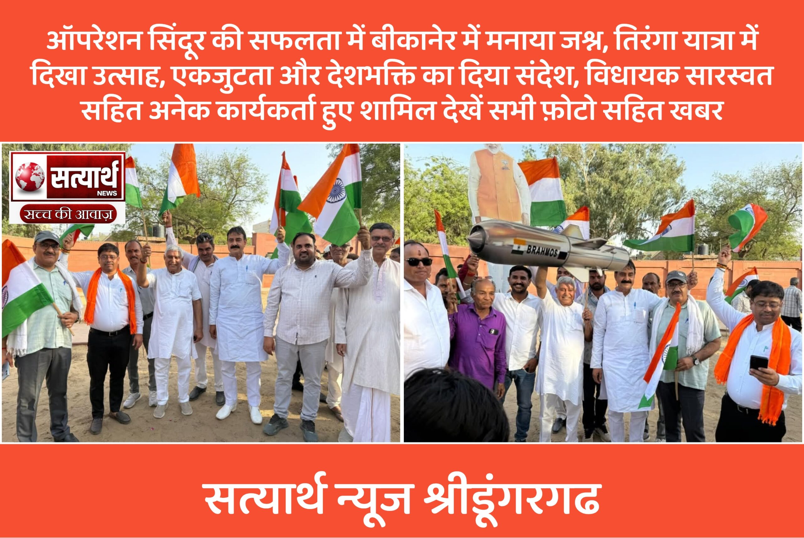 सत्यार्थ न्यूज श्रीडूंगरगढ़ -सवांददाता ब्युरो चीफ बीकानेर में शुक्रवार को “राष्ट्रीय सुरक्षा के लिए नागरिक” बैनर तले निकली तिरंगा यात्रा…