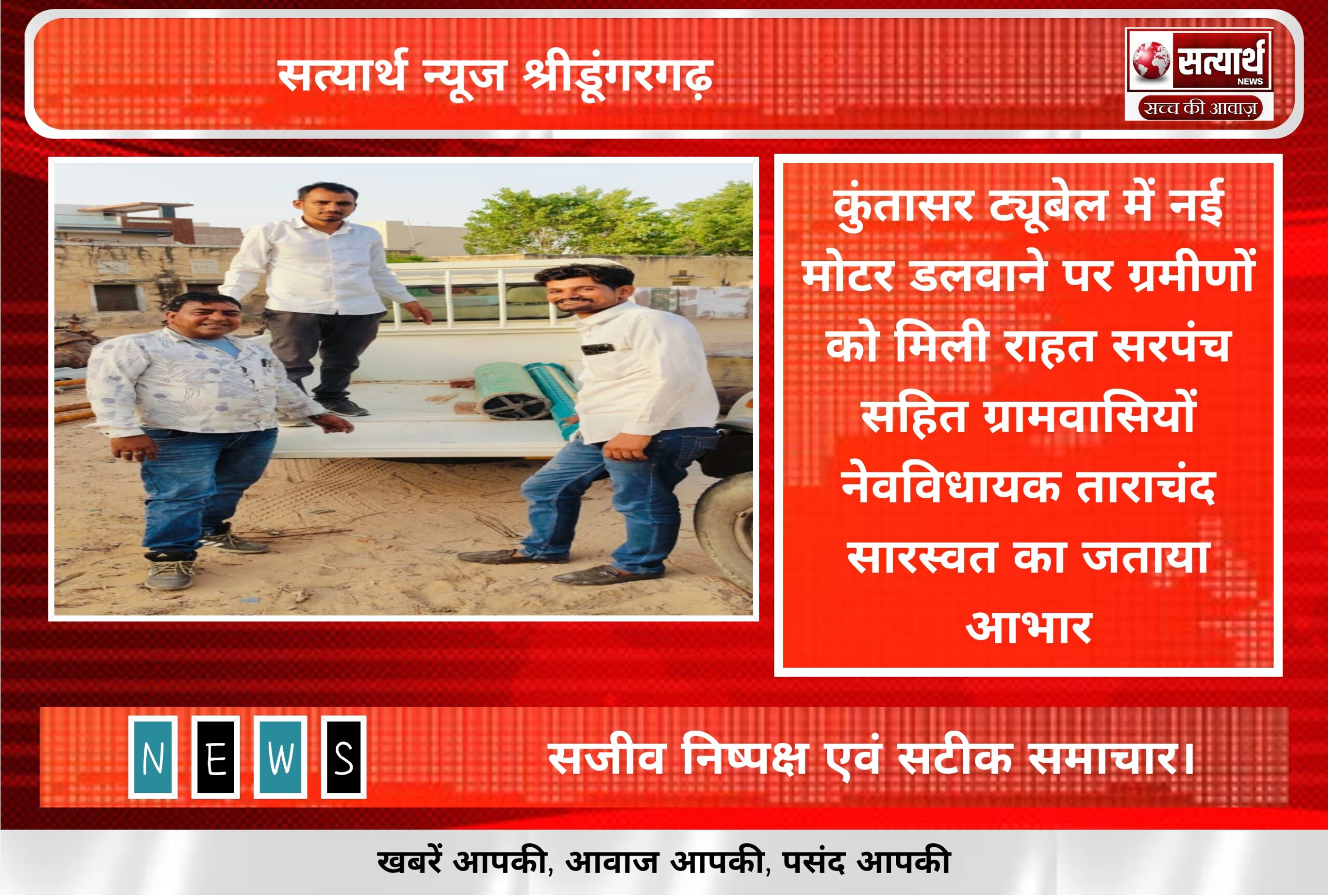 सत्यार्थ न्यूज श्रीडूंगरगढ़- सवांददाता ब्युरो चीफ श्रीडूंगरगढ़ क्षेत्र के ग्राम कुंतासर में लंबे समय से ट्यूबवेल की मोटर खराब रहने…