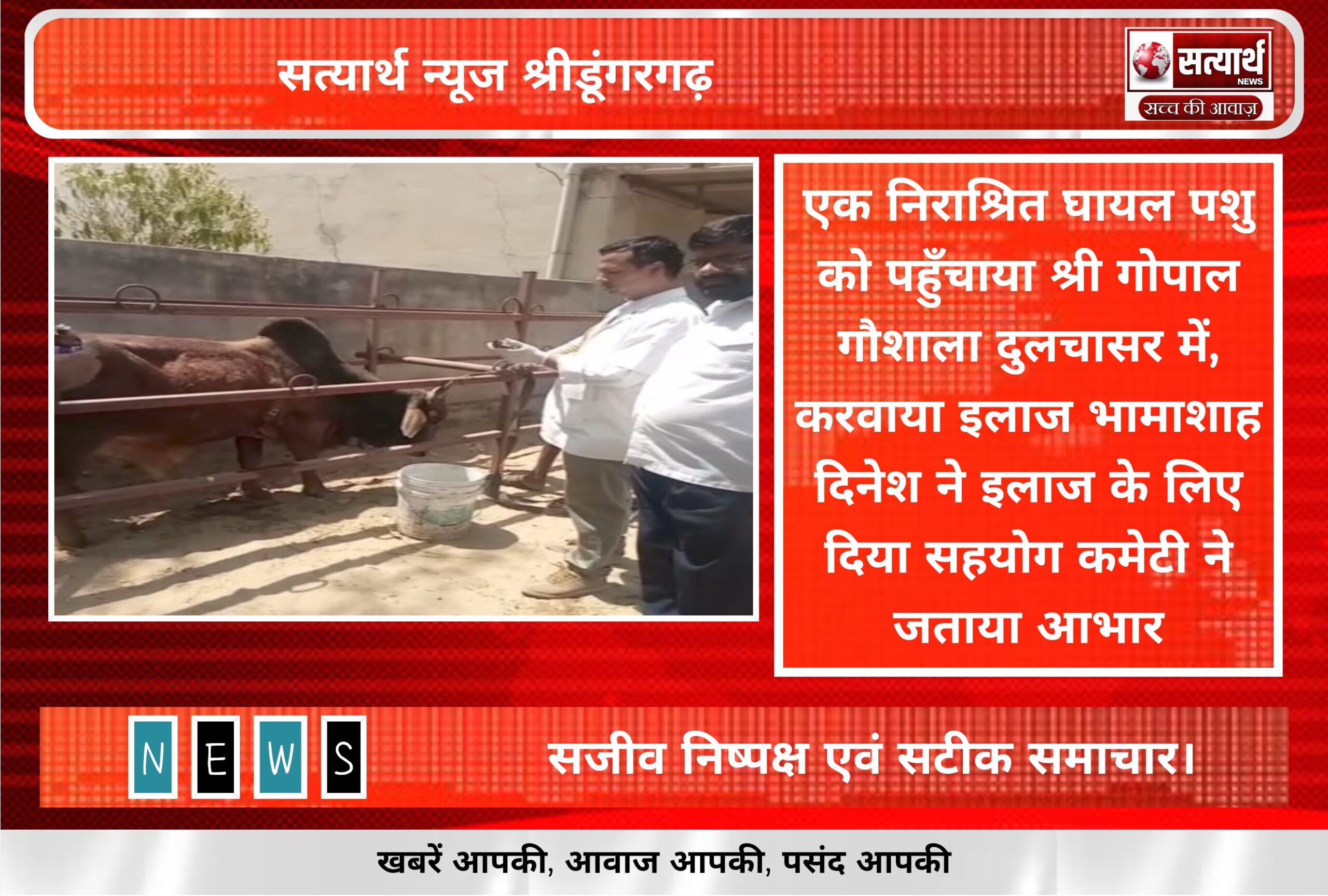 सत्यार्थ न्यूज श्रीडूंगरगढ़-सवांददाता ब्युरो चीफ श्री गोपाल गौशाला दुलचासर में एक निराश्रित पशु सांड जो घायल अवस्था में गांव के…