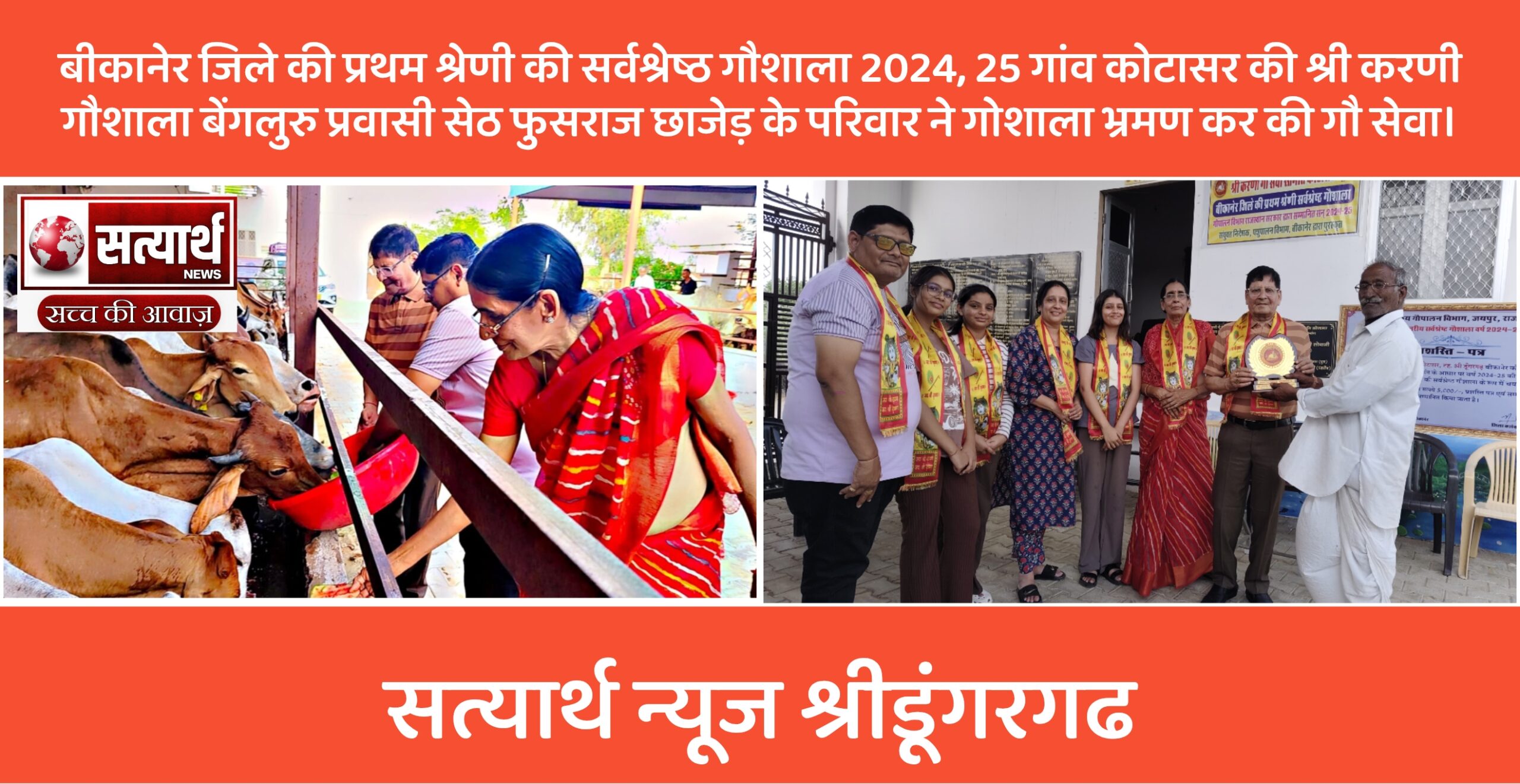 सत्यार्थ न्यूज श्रीडूंगरगढ़ – सवांददाता ब्युरो चीफ गांव कोटासर की श्री करणी गो सेवा समिति गौशाला आज बेंगलुरु प्रवासी फुसराज…