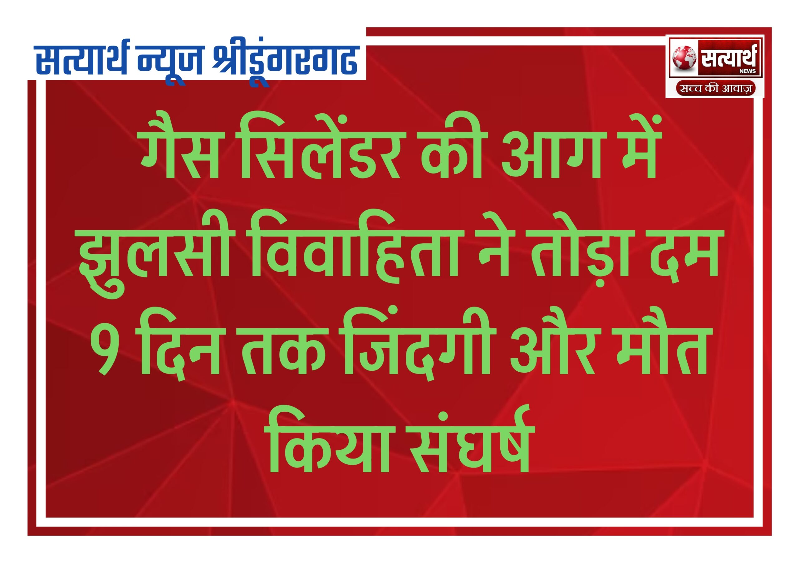 सत्यार्थ न्यूज श्रीडूंगरगढ़- सवांददाता ब्युरो चीफ जैसलसर गांव में खाना बनाते समय गैस सिलेंडर की आग की चपेट में आई…