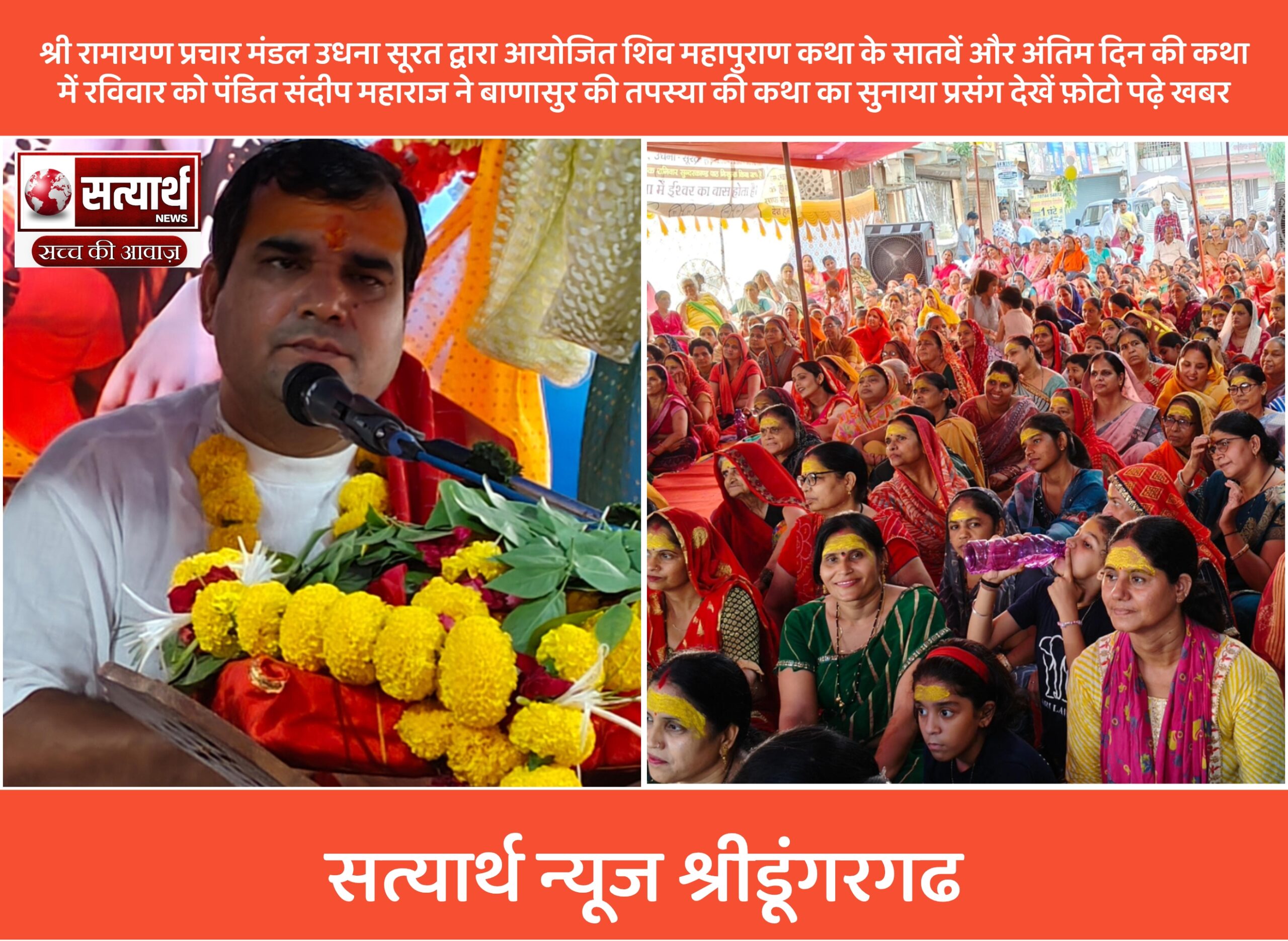 सत्यार्थ न्यूज श्रीडूंगरगढ़- सवांददाता ब्युरो चीफ श्री रामायण प्रचार मंडल उधना सूरत द्वारा आशानगर में आयोजित शिव महापुराण कथा के…