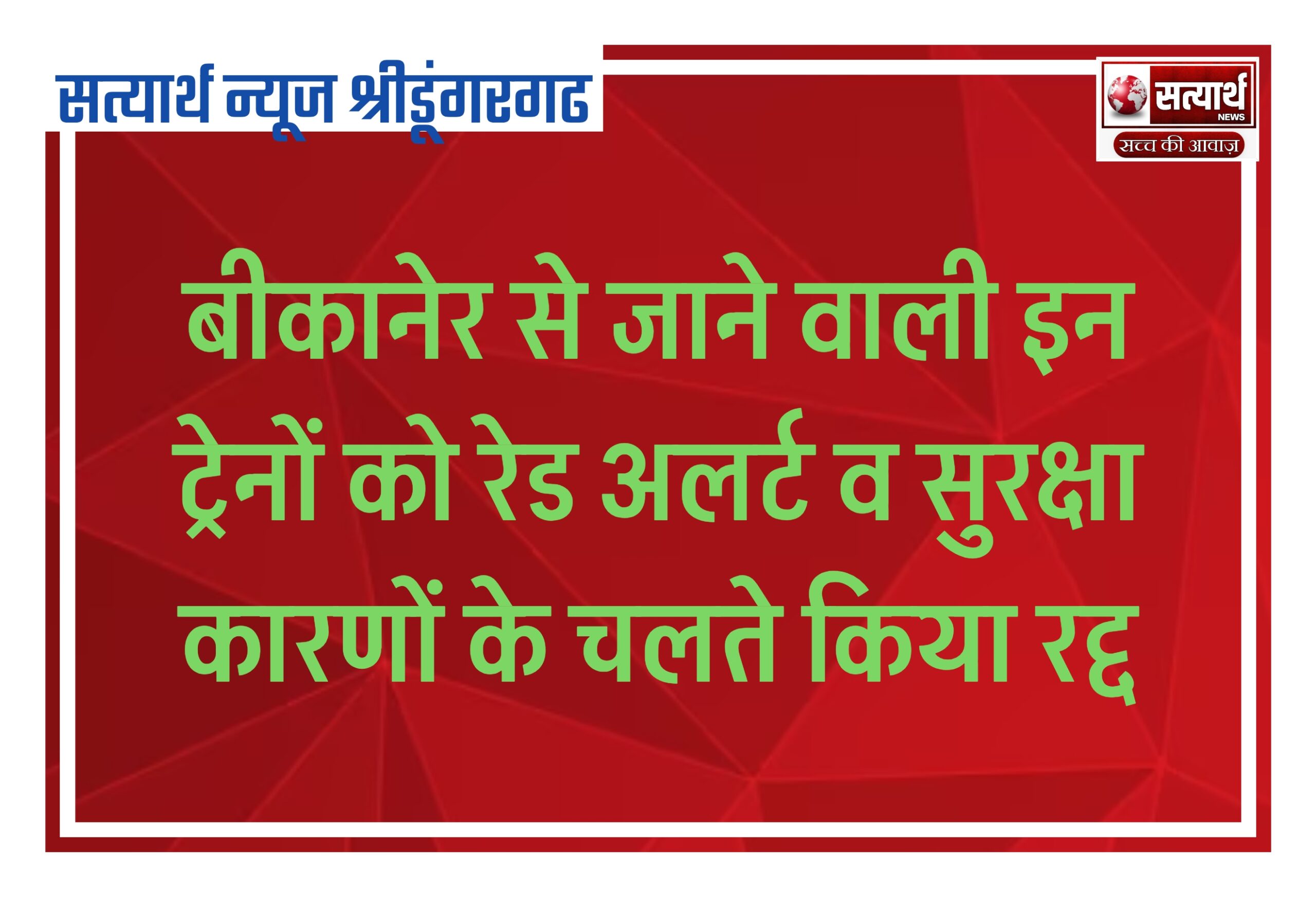 सत्यार्थ न्यूज श्रीडूंगरगढ़-सवांददाता ब्युरो चीफ भारत पाकिस्तान के तनाव के चलते रेलवे ने सुरक्षा के कारण 10.05.2025 को कुछ ट्रेनों…