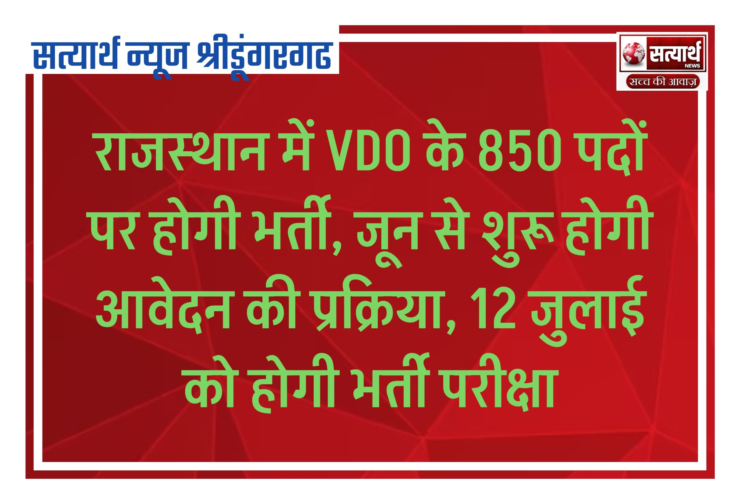 सत्यार्थ न्यूज श्रीडूंगरगढ़- सवांददाता मीडिया प्रभारी राजस्थान कर्मचारी चयन बोर्ड जल्द ही ग्रामीण विकास अधिकारी (VDO) के 850 पदों पर…