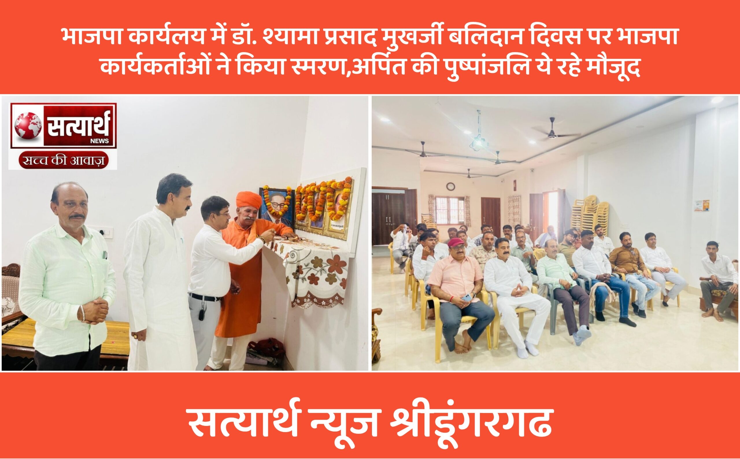 सत्यार्थ न्यूज श्रीडूंगरगढ़-सवांददाता ब्यूरो चीफ आज भारतीय जनसंघ के संस्थापक, “एक देश एक विधान” के प्रणेता डॉ. श्यामा प्रसाद मुखर्जी…