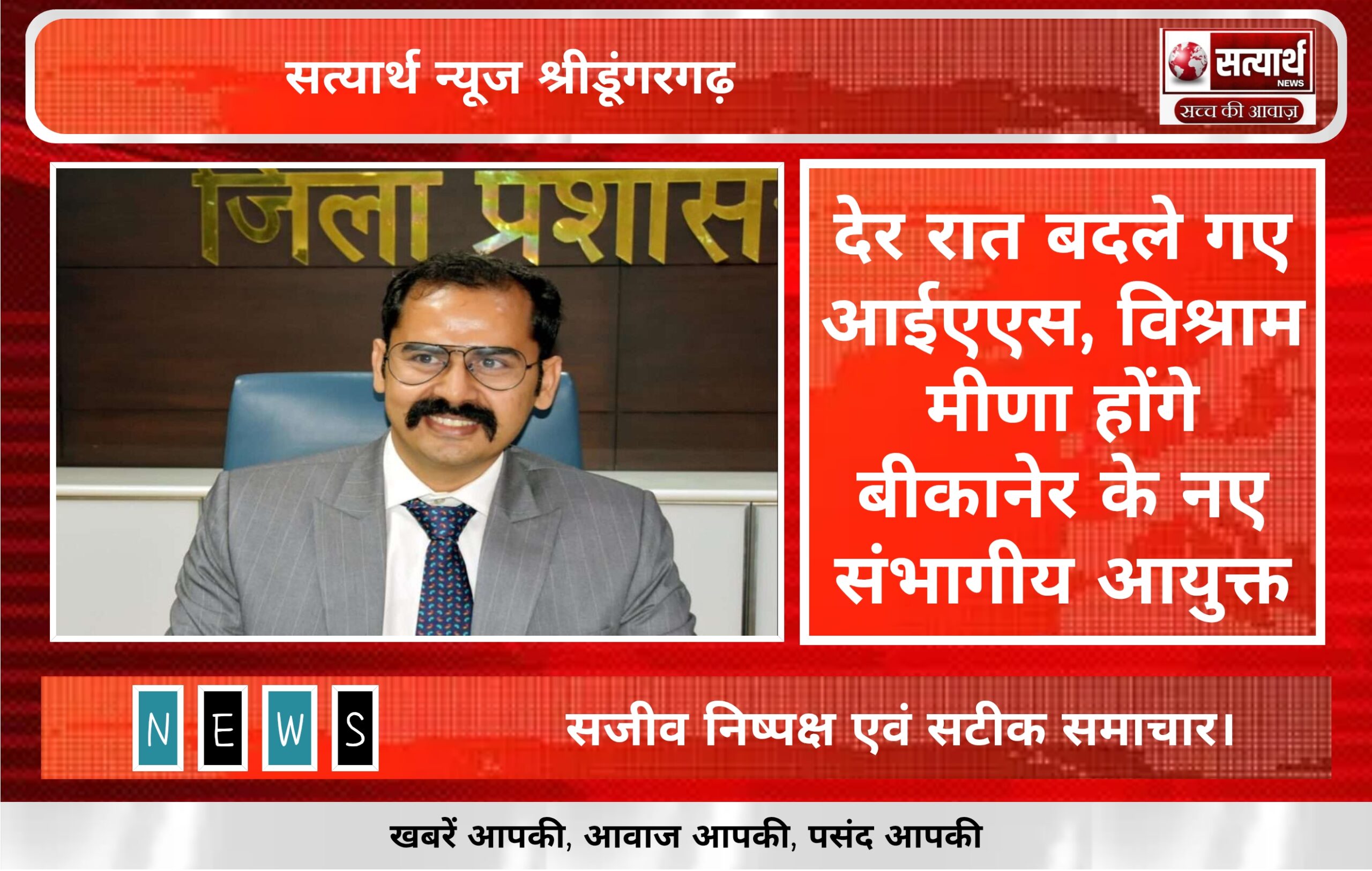 सत्यार्थ न्यूज श्रीडूंगरगढ़-सवांददाता ब्यूरो चीफ राजस्थान सरकार के कार्मिक विभाग ने देर रात आईएएस (भारतीय प्रशासनिक सेवा) के स्थानांतरण आदेश…