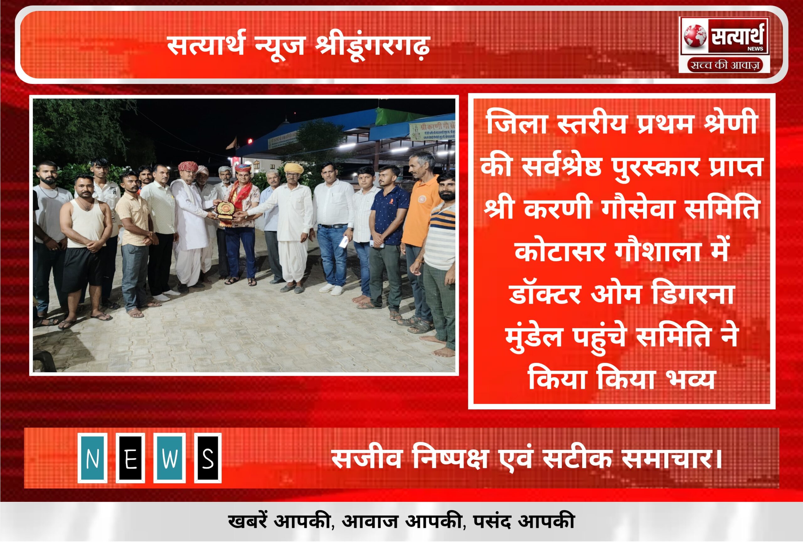 सत्यार्थ न्यूज श्रीडूंगरगढ-सवांददाता मीडिया प्रभारी आज श्री करणी गौसेवा समिति गौशाला कोटासर गौभक्त ओम मुंडेल,भामाशाह सूरत के युवा उद्यमी रामप्रताप…