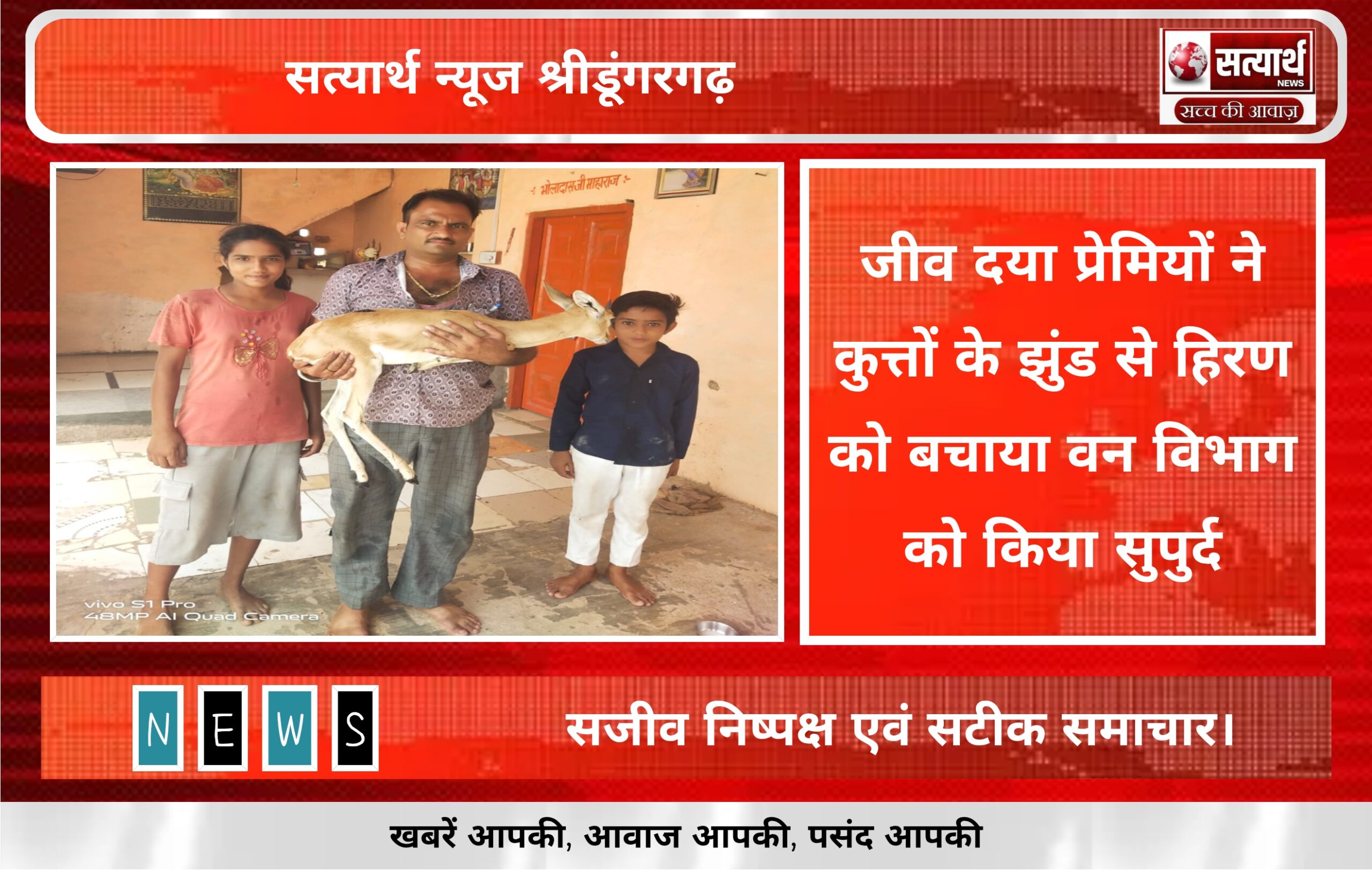 सत्यार्थ न्यूज श्रीडूंगरगढ-सवांददाता ब्यूरो चीफ क्षेत्र के गांव धर्मास की रोही में जीव दया प्रेमियों ने आज एक हिरण की…