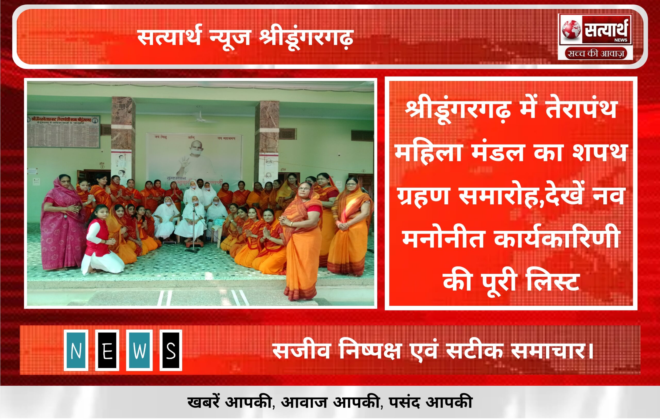 सत्यार्थ न्यूज श्रीडूंगरगढ-सवांददाता ब्यूरो चीफ स्थानीय मालू भवन में केंद्र व्यवस्थापिका साध्वी संगीत श्रीजी साध्वी डॉक्टर परम प्रभा जी के…