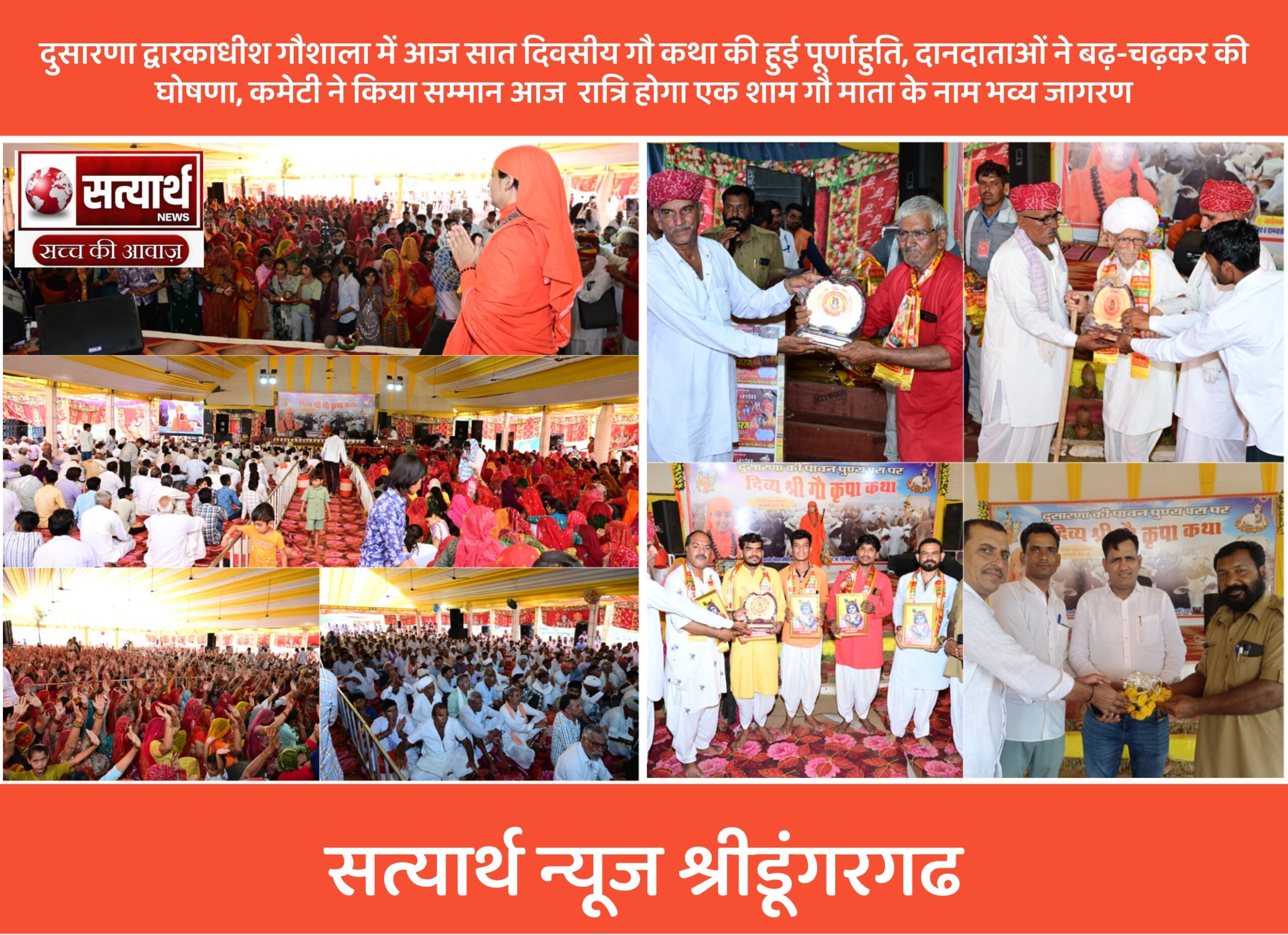सत्यार्थ न्यूज श्रीडूंगरगढ-सवांददाता ब्यूरो चीफ द्वारकाधीश गौशाला दुसारणा में आज सात दिवसीय गौ कथा की पूर्णाहुति हुई। गौ कथा में…