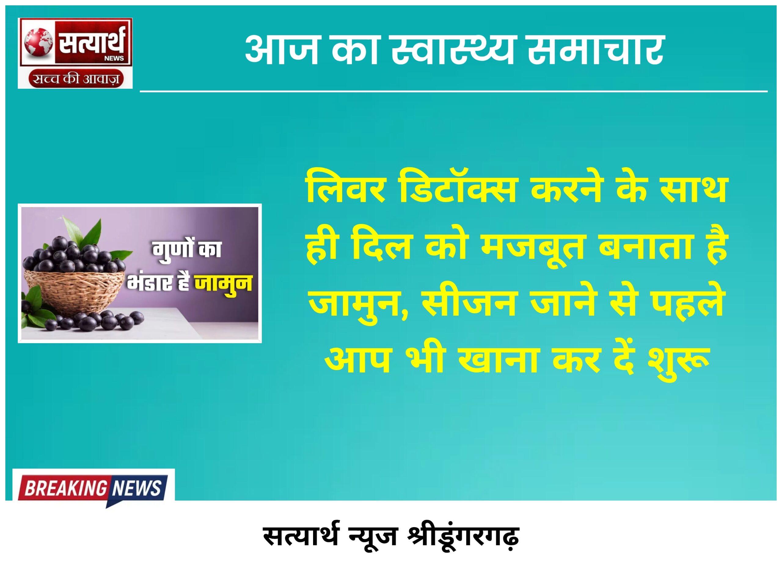 सत्यार्थ न्यूज श्रीडूंगरगढ-सवांददाता मीडिया प्रभारी जामुन एक स्वादिष्ट फल है जिसे कई लोग बड़े चाव से खाते हैं। यह पोषक…