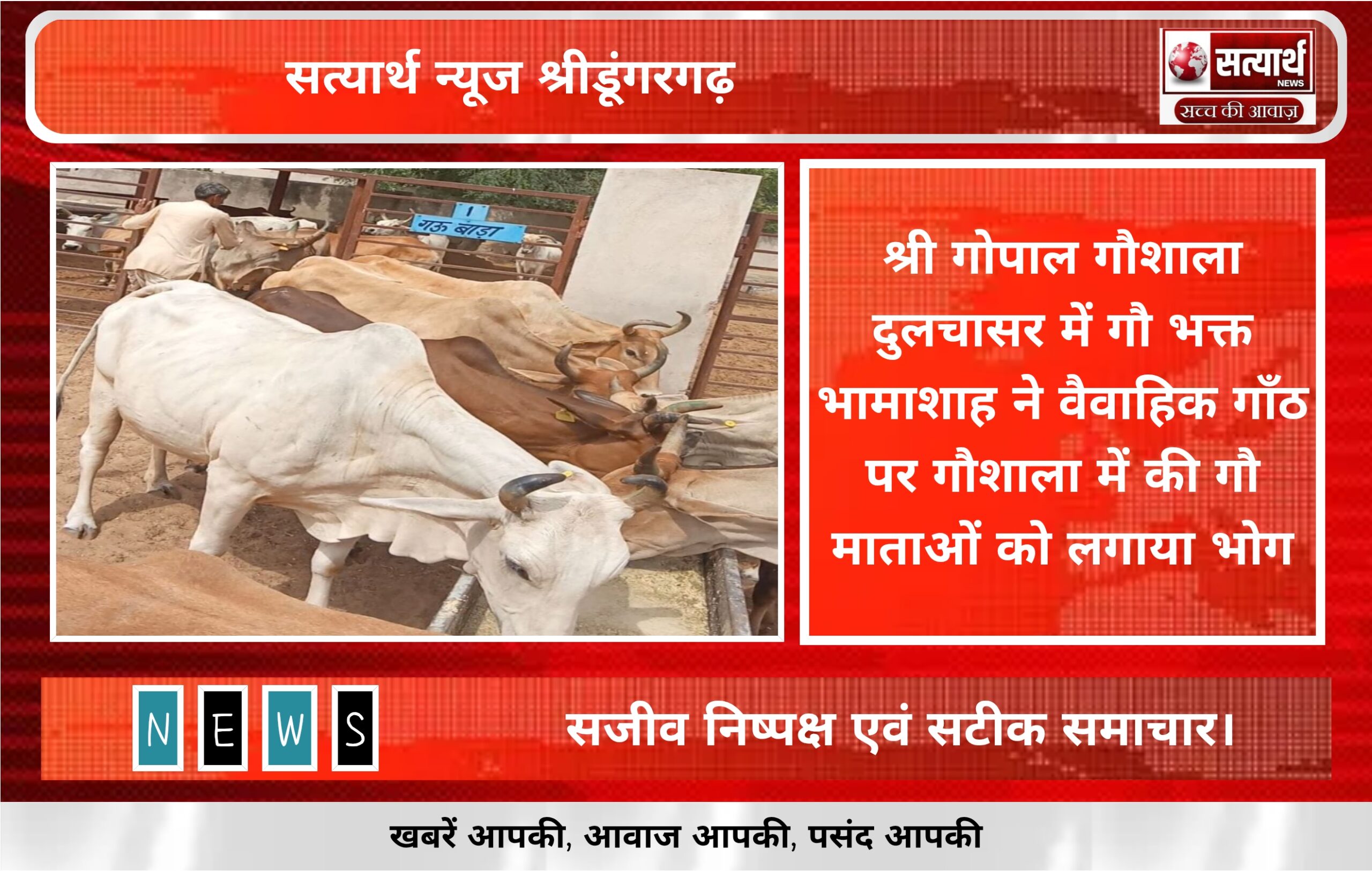 सत्यार्थ न्यूज श्रीडूंगरगढ़-सवांददाता ब्यूरो चीफ श्री गोपाल गौशाला दुलचासर में आज गौ भक्त भामाशाह मोतीलाल सुपुत्र दिवंगत गंगाविशन मुधड़ा निवासी…