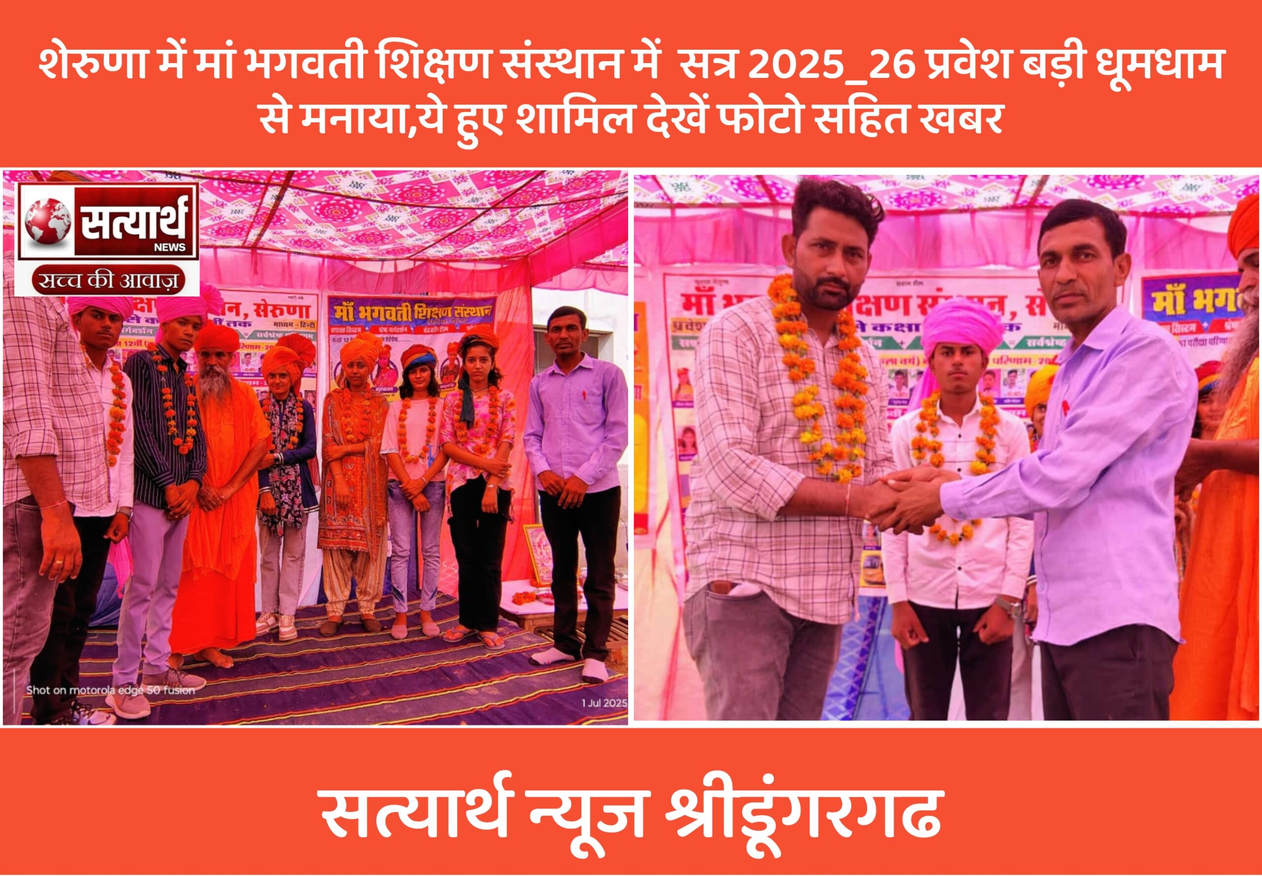 सत्यार्थ न्यूज श्रीडूंगरगढ़-सवांददाता ब्यूरो चीफ शेरुणा में मां भगवती शिक्षण संस्थान में मंगलवार को सत्र 2025_26 प्रवेश बड़ी धूमधाम से…