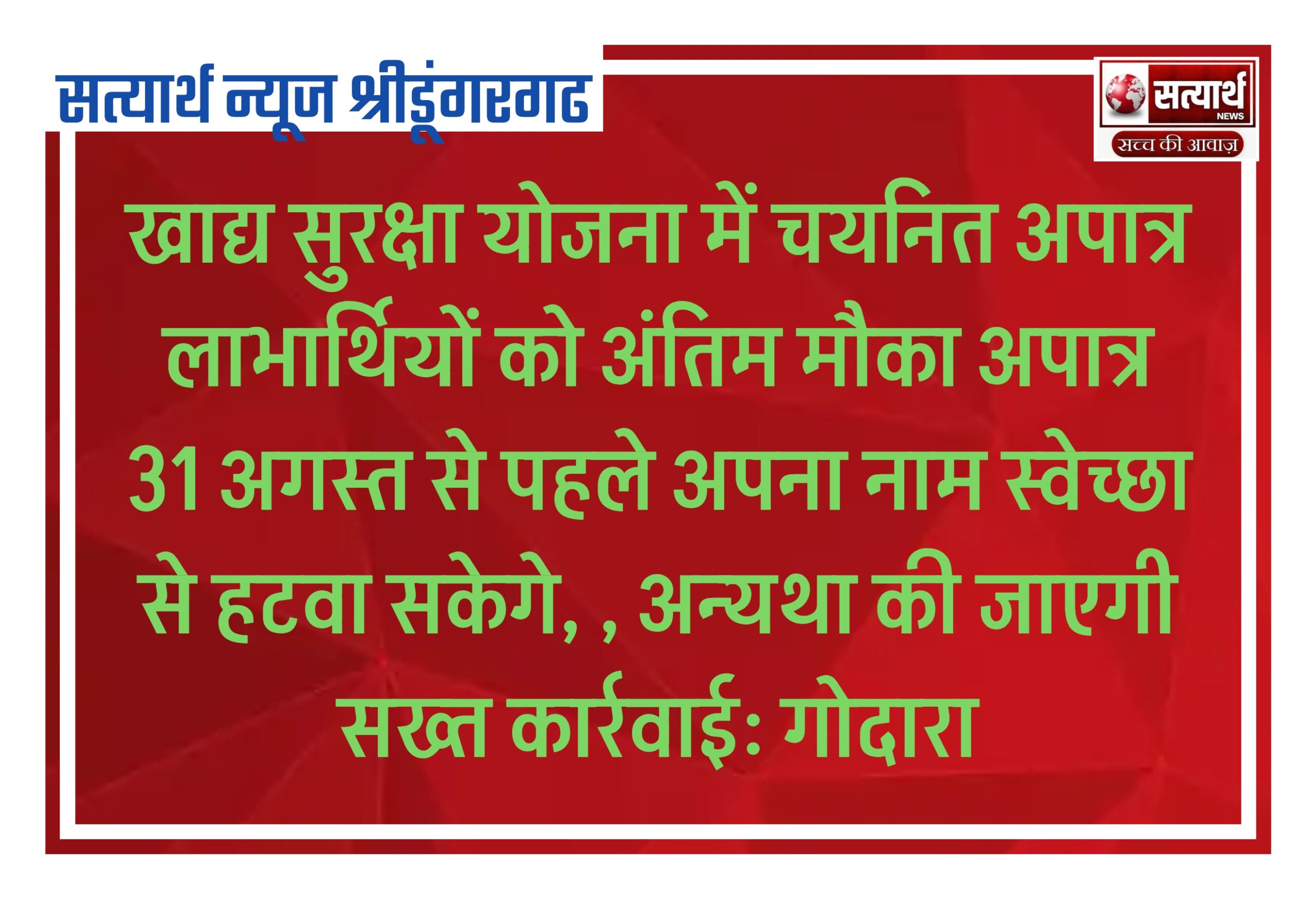 सत्यार्थ न्यूज श्रीडूंगरगढ़-सवांददाता ब्यूरो चीफ मुख्यमंत्री भजन लाल शर्मा के मार्गदर्शन में राज्य सरकार निरन्तर वंचित वर्गों के उत्थान के…