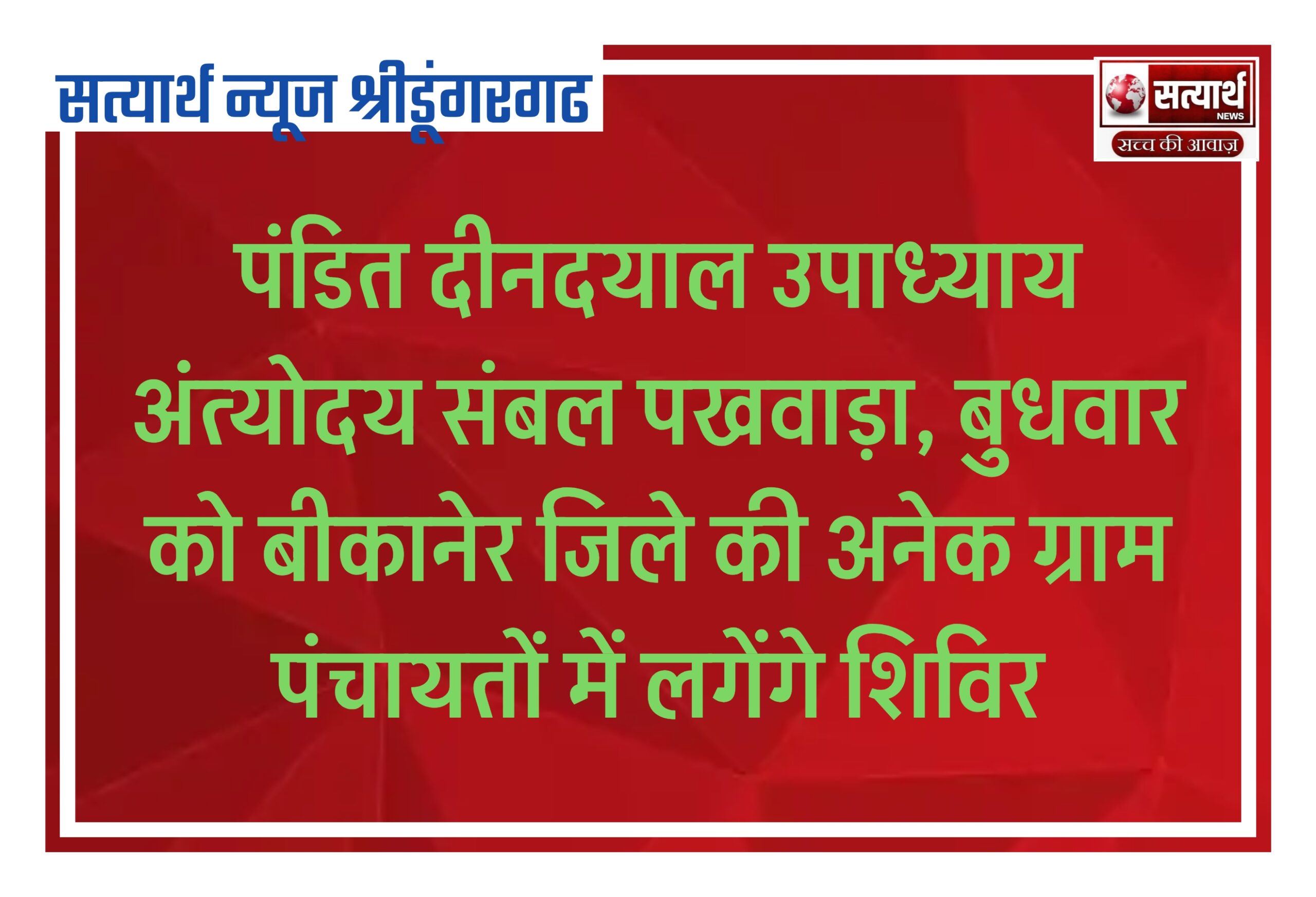 सत्यार्थ न्यूज श्रीडूंगरगढ -सवांददाता मीडिया प्रभारी पंडित दीनदयाल उपाध्याय अंत्योदय संबल पखवाड़ा के अंतर्गत बुधवार को जिले की विभिन्न ग्राम…