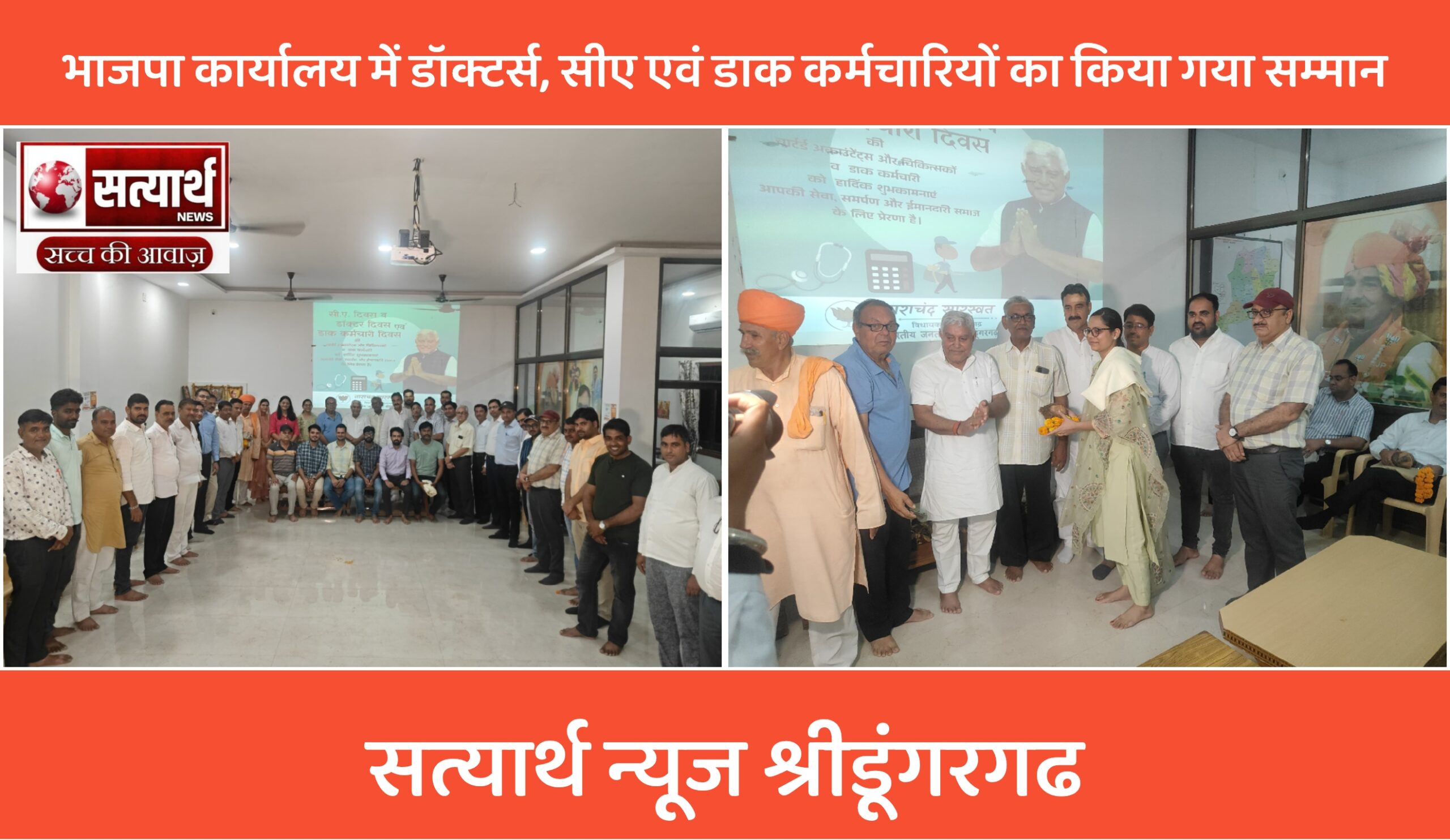 सत्यार्थ न्यूज श्रीडूंगरगढ-सवांददाता ब्यूरो चीफ श्रीडूंगरगढ़ भाजपा कार्यालय में आज डॉक्टर्स डे, डाक कर्मचारी एवं सी.ए. दिवस पर डॉक्टर्स, डाक…
