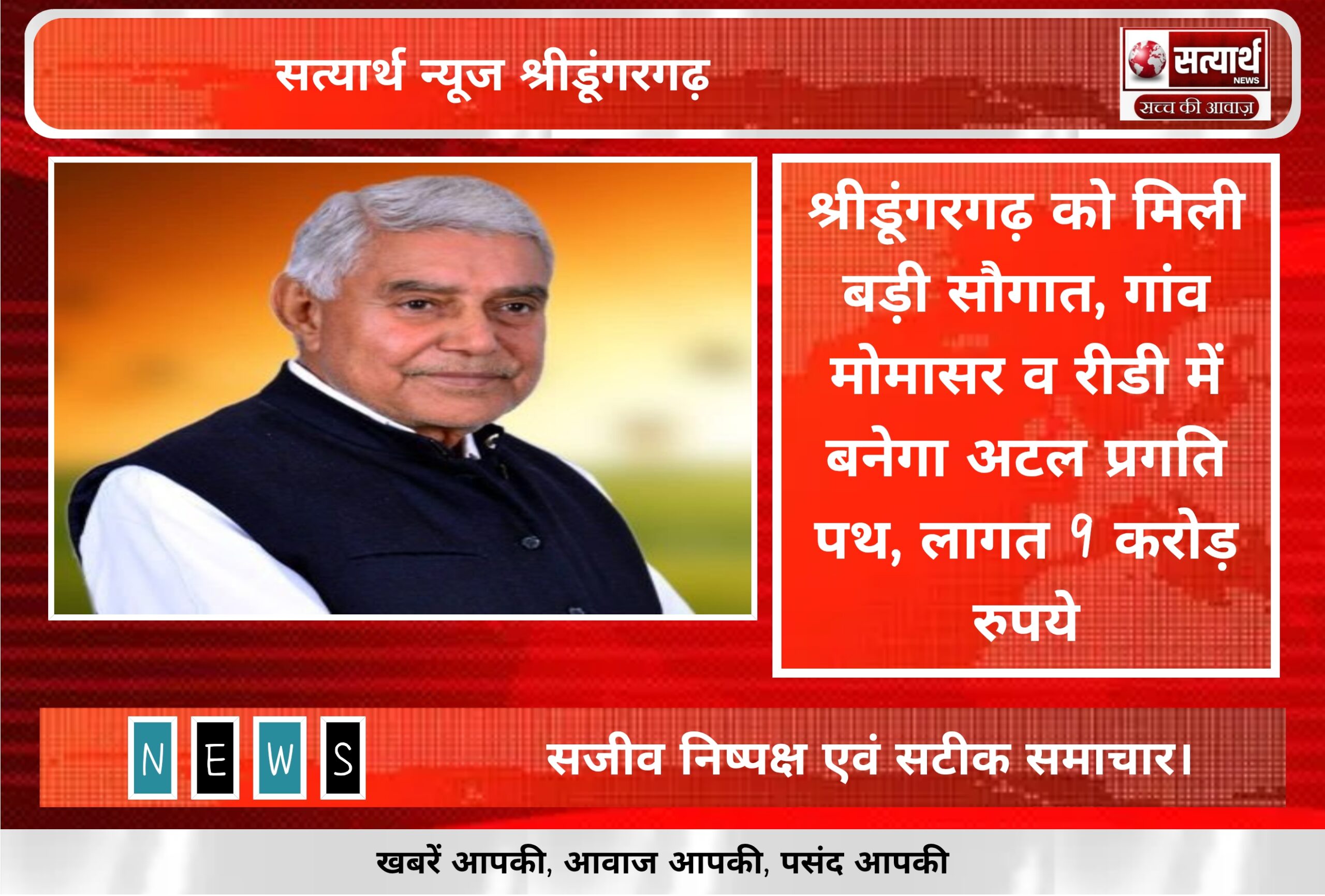 सत्यार्थ न्यूज श्रीडूंगरगढ-सवांददाता ब्यूरो चीफ श्रीडूंगरगढ़ विधानसभा क्षेत्र के ग्रामीण विकास को नई दिशा मिल रही है। क्षेत्र के मोमासर…
