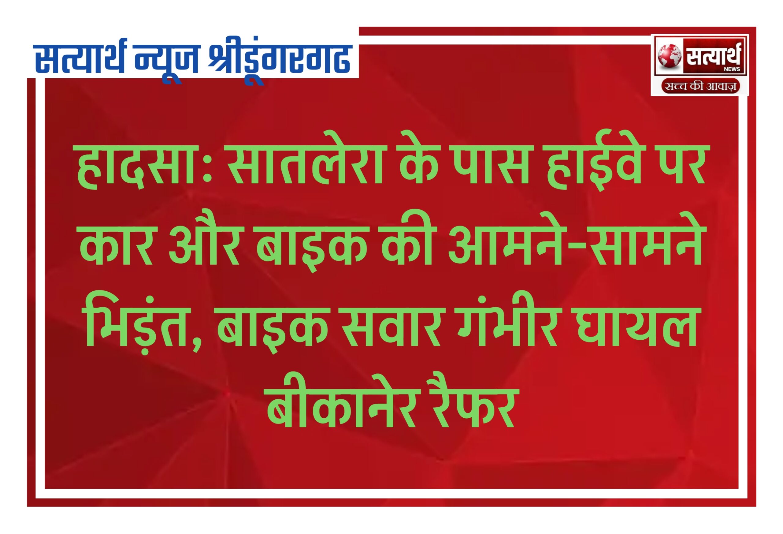 सत्यार्थ न्यूज श्रीडूंगरगढ-सवांददाता ब्यूरो चीफ सातलेरा से श्रीडूंगरगढ़ की ओर हाईवे पर मंगलवार शाम को एक तेज़ रफ्तार कार और…