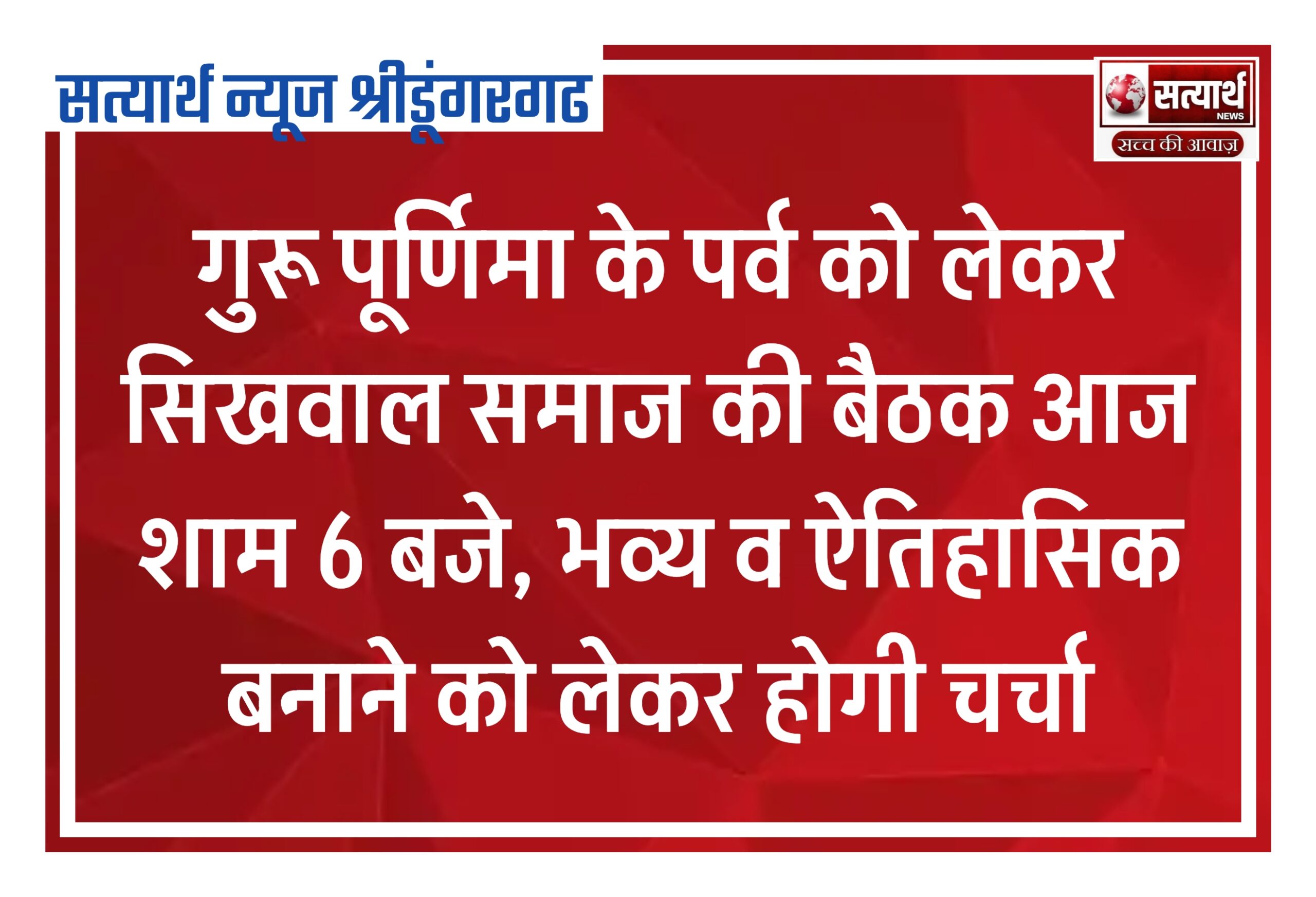 सत्यार्थ न्यूज श्रीडूंगरगढ-सवांददाता ब्यूरो चीफ गुरू पूर्णिमा पर्व पर भव्य आयोजन की विस्तृत चर्चा व तैयारी रूपरेखा बनाने के लिए…