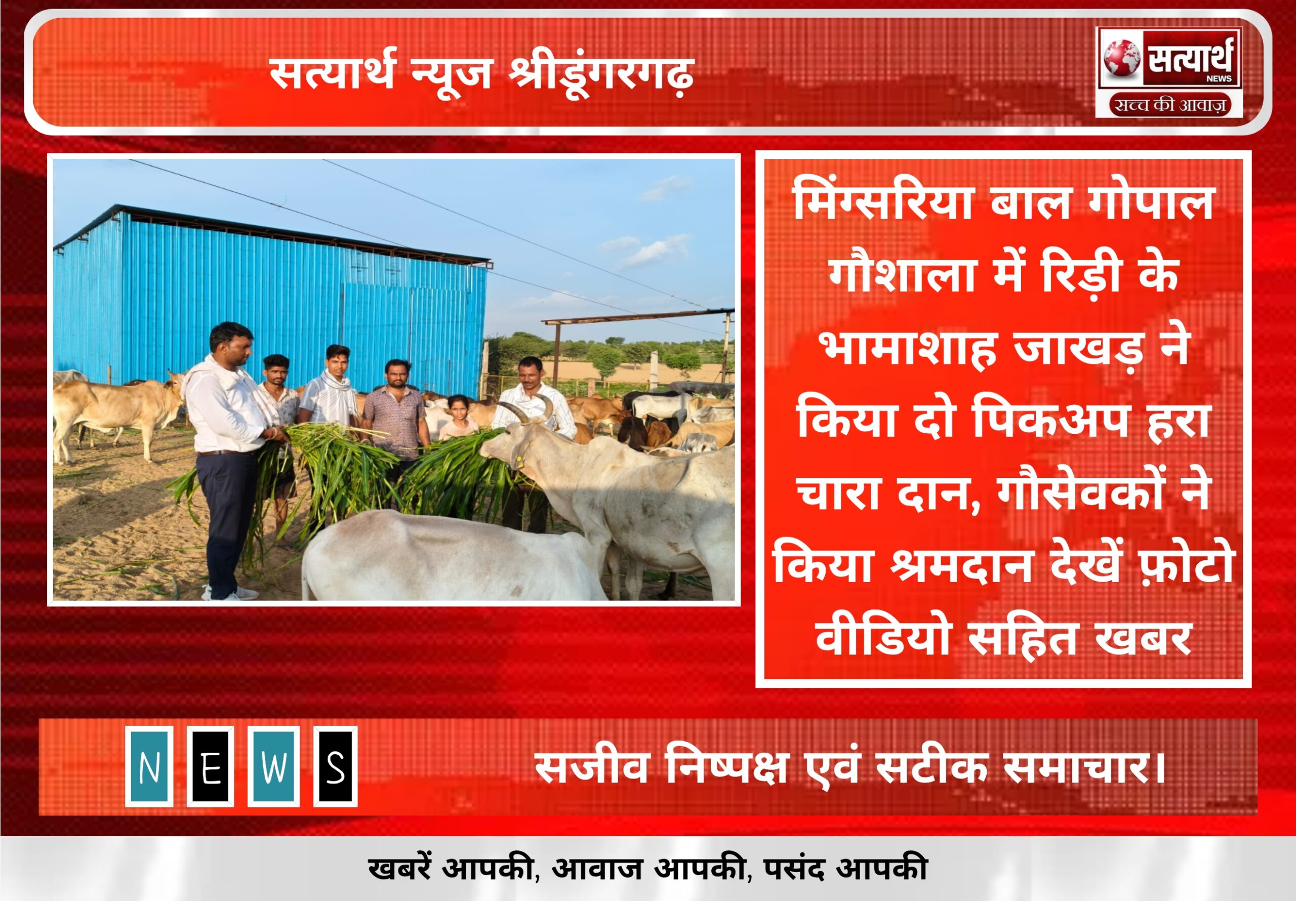 सत्यार्थ न्यूज श्रीडूंगरगढ़- सवांददाता ब्यूरो चीफ बाल गोपाल गौशाला समिति मिंगसरिया में रीड़ी गांव के भामाशाह जाखड़ परिवार ने दो…