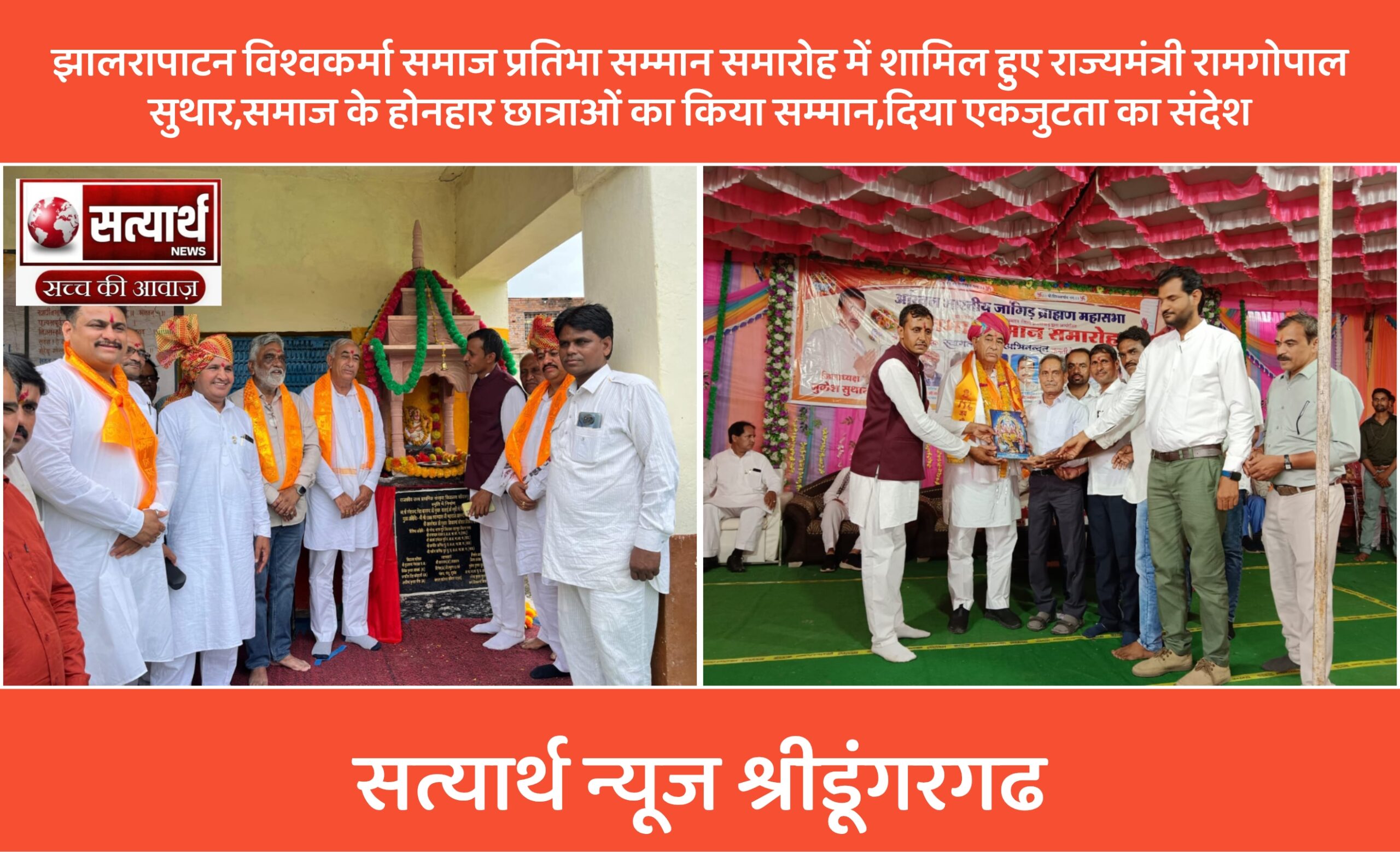 सत्यार्थ न्यूज श्रीडूंगरगढ़-सवांददाता ब्यूरो चीफ 📍झालरापाटन, झालावाड़ | प्रतिभा सम्मान समारोह शनिवार को झालरापाटन विधानसभा क्षेत्र में विश्वकर्मा समाज प्रतिभा…
