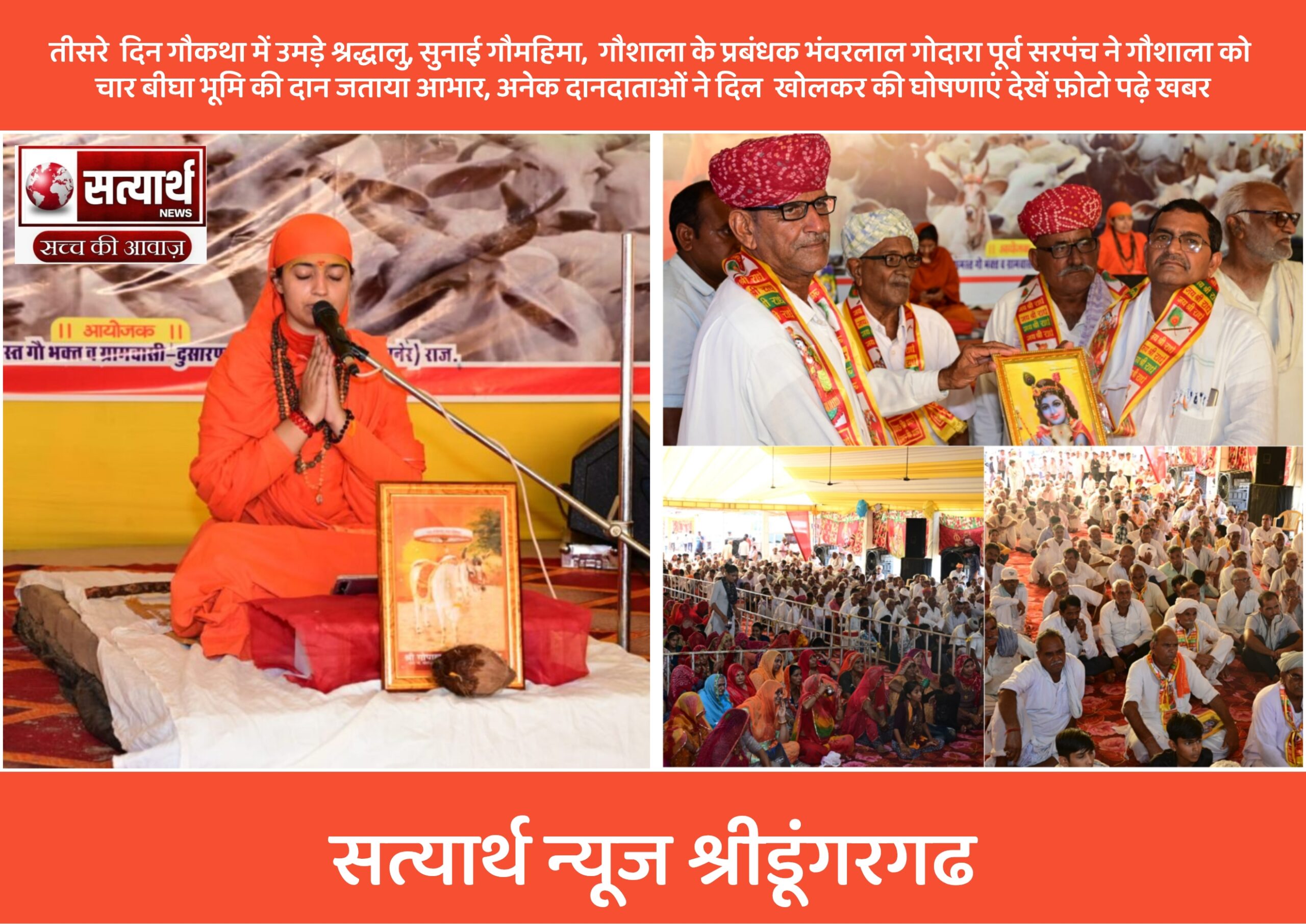 सत्यार्थ न्यूज श्रीडूंगरगढ -सवांददाता ब्यूरो चीफ दुसारणा की द्वारिकाधीश गौशाला चल रही गौ कथा के तीसरे दिन कथावाचक साध्वी श्रद्धा…