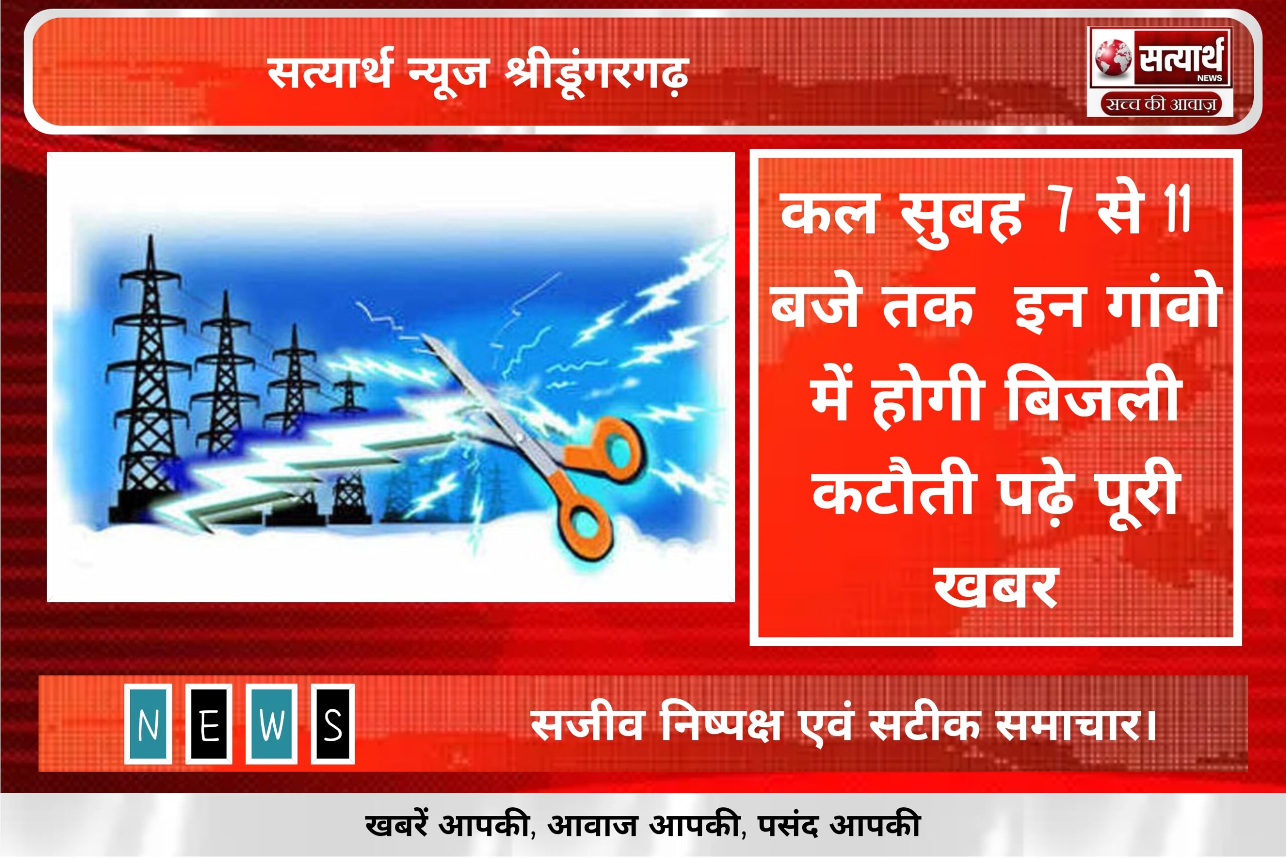 सत्यार्थ न्यूज श्रीडूंगरगढ-सवांददाता ब्यूरो चीफ कितासर क्षेत्र ग्रामीणों को रविवार को बिजली कटौती का सामना करना पड़ेगा 132 केवी जीएसएस…