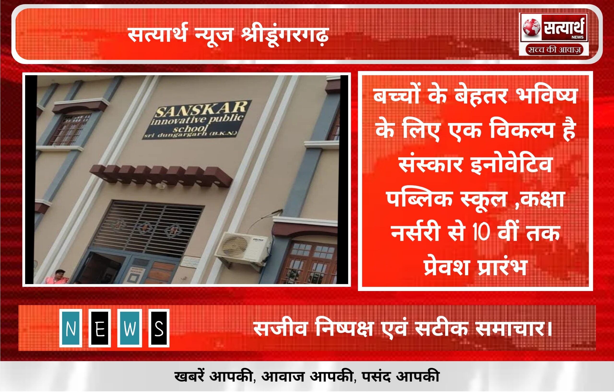 सत्यार्थ न्यूज श्रीडूंगरगढ़-सवांददाता ब्यूरो चीफ कस्बे के आड़सर बास में हनुमान क्लब के पास स्थित अंग्रेजी माध्यम स्कूल संस्कार इनोवेटिव…