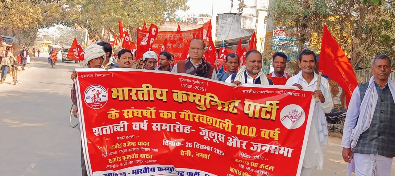 भाकपा की शताब्दी वर्ष समारोह पर कार्यकर्ताओं ने तीन किलोमीटर की दूरी तक निकाला जूलूस और किया जनसभा। सोनभद्र /सत्यनारायण…