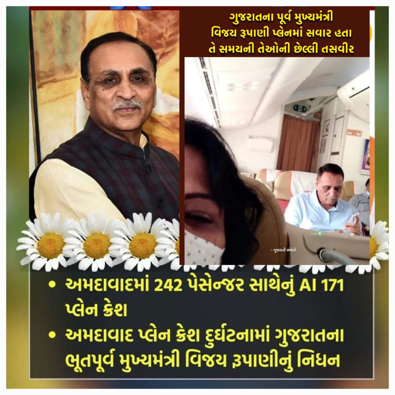 અમદાવાદ પ્લેન રેસમાં ગુજરાતના પૂર્વ મુખ્યમંત્રી વિજય રૂપાણી નું નિધન રિપોર્ટર નિલેશ હિરાણી સોમનાથ ગુજરાત