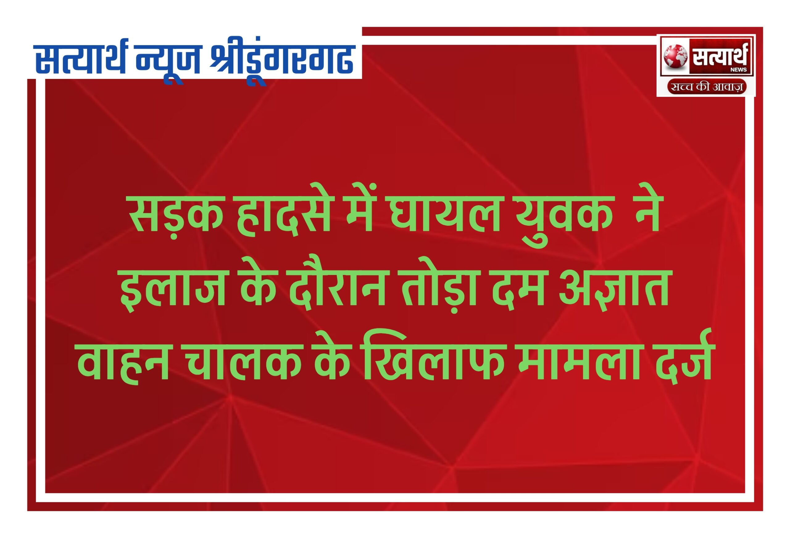 सड़क हादसे में घायल युवक ने इलाज के दौरान तोड़ा दम अज्ञात वाहन चालक के खिलाफ मामला दर्ज