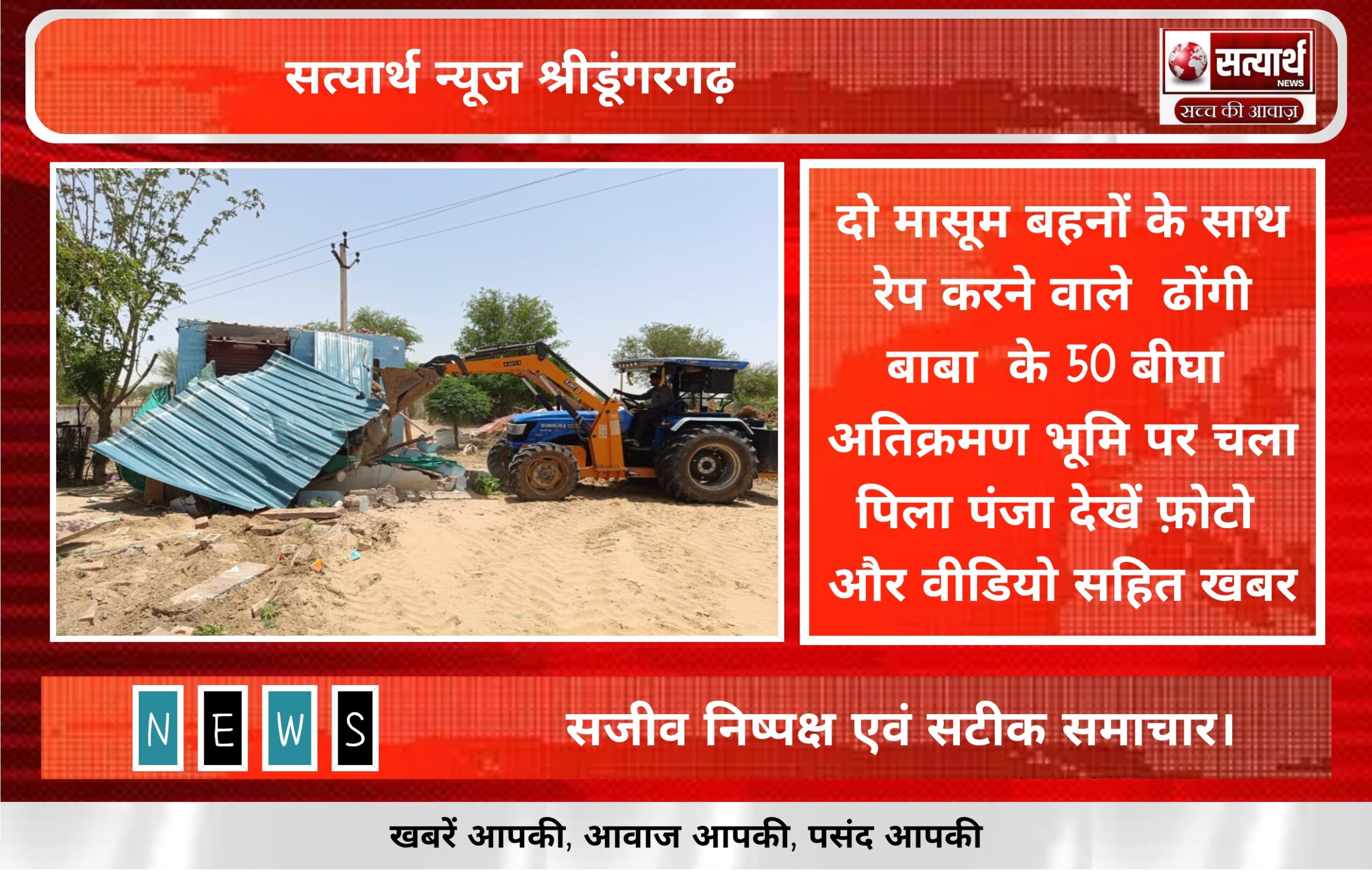सत्यार्थ न्यूज श्रीडूंगरगढ़-सवांददाता ब्यूरो चीफ श्रीडूंगरगढ़ से बड़ी खबर प्रशासन का योगी मॉडल देखने को मिला दो मासूम बहनों के…