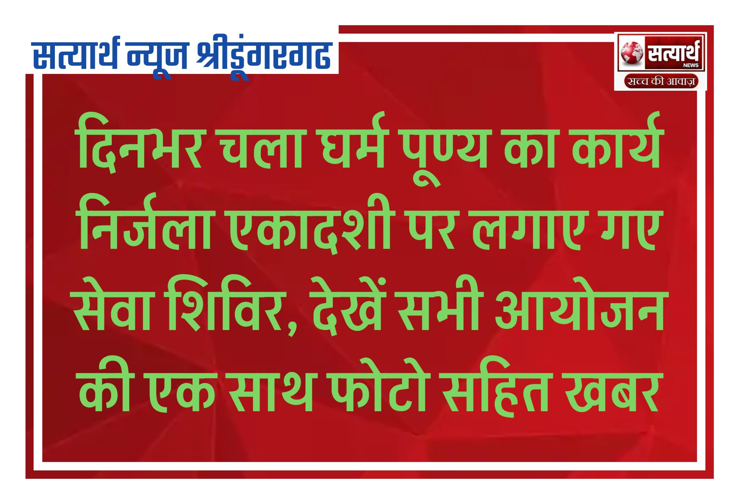 दिनभर चला घर्म पूण्य का कार्य निर्जला एकादशी पर लगाए गए सेवा शिविर, देखें सभी आयोजन की एक साथ फोटो सहित खबर
