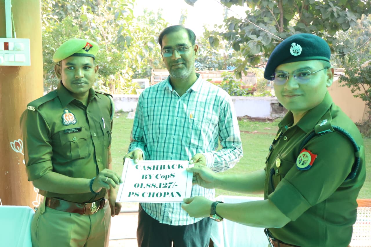 सोनभद्र – *थाना चोपन की साइबर टीम द्वारा आवेदक की फ्रॉड हुई ₹1,88,127/- (एक लाख अठ्ठासी हजार एक सौ सत्ताइस रुपये) की धनराशि वापस करायी गयी-*