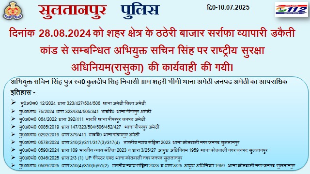 रिपोर्टर मोहम्मद सेबू सुल्तानपुर सर्राफा डकैती कांड में SP की सख्त कार्रवाई बहुचर्चित ठठेरी बाजार डकैती कांड के आरोपियों पर…