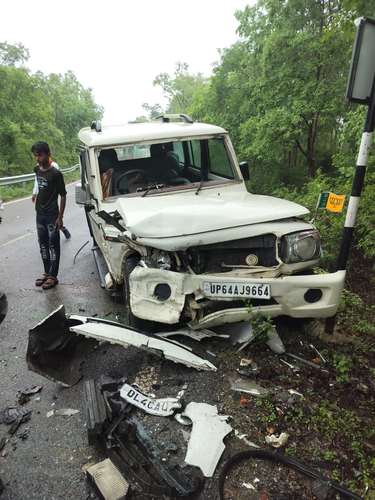 बोलेरो और कार में आमने सामने जोरदार टक्कर 7 चोटिल