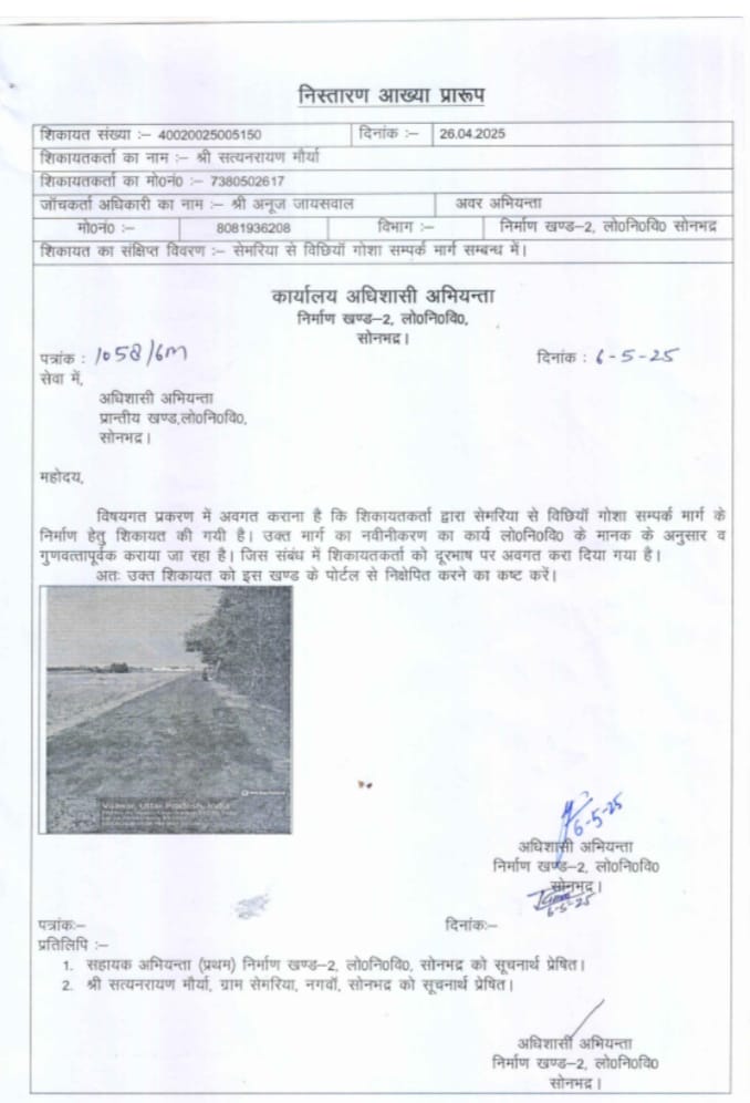 निर्माण खण्ड -2 लो 0 नि 0 वि 0 लगा रहा फर्जी आख्या सोनभद्र /सत्यनारायण मौर्य/संतेश्वर सिंह Mo 9580757830 सोनभद्र…