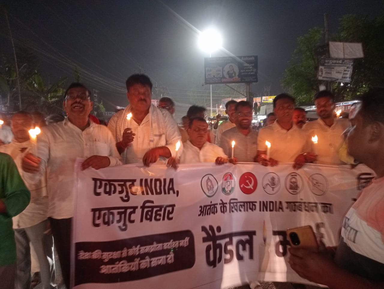 पहलगाम हमले में मारे गये नागरिकों की आत्मा की शांति हेतु महागठबंधन दलों द्वारा मौन कैडिंल मार्च निकाला गया पहलगाम…