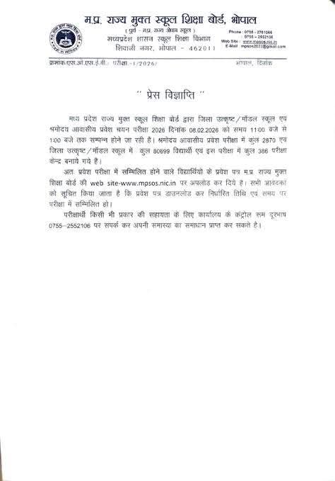 जिला उत्कृष्ट व मॉडल स्कूल एवं श्रमोदय आवासीय प्रवेश परीक्षा 8 फरवरी को संवाददाता धनंजय जोशी जिला पांढुरना मध्य प्रदेश…