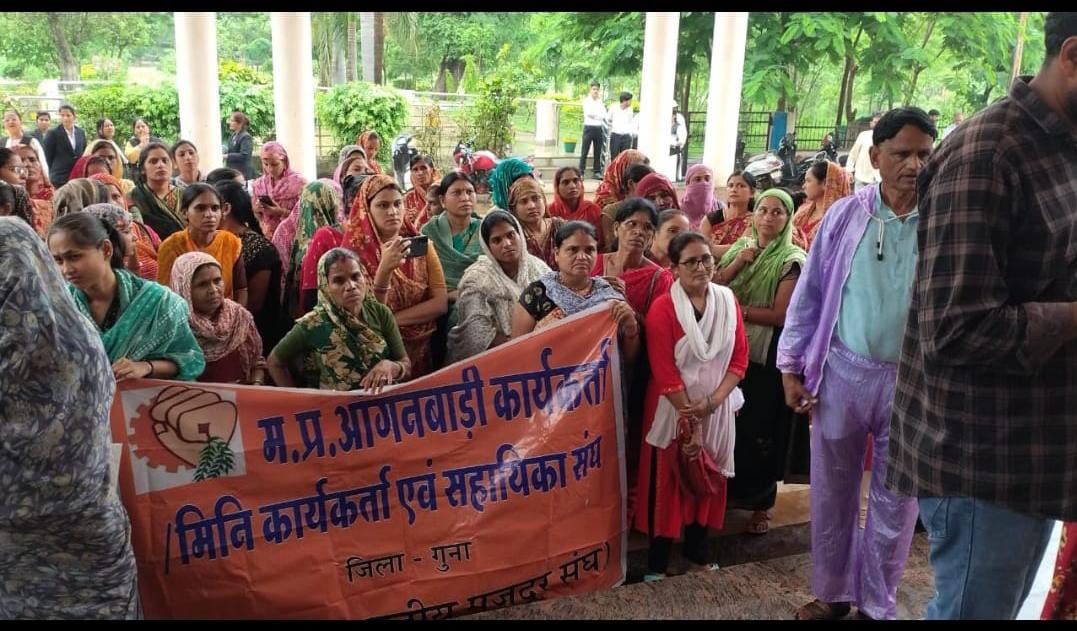 कलेक्टोरेट पर आंगनवाड़ी कार्यकर्ताओं का प्रदर्शन, प्रधानमंत्री के नाम सौंपा 5 सूत्रीय ज्ञापन
