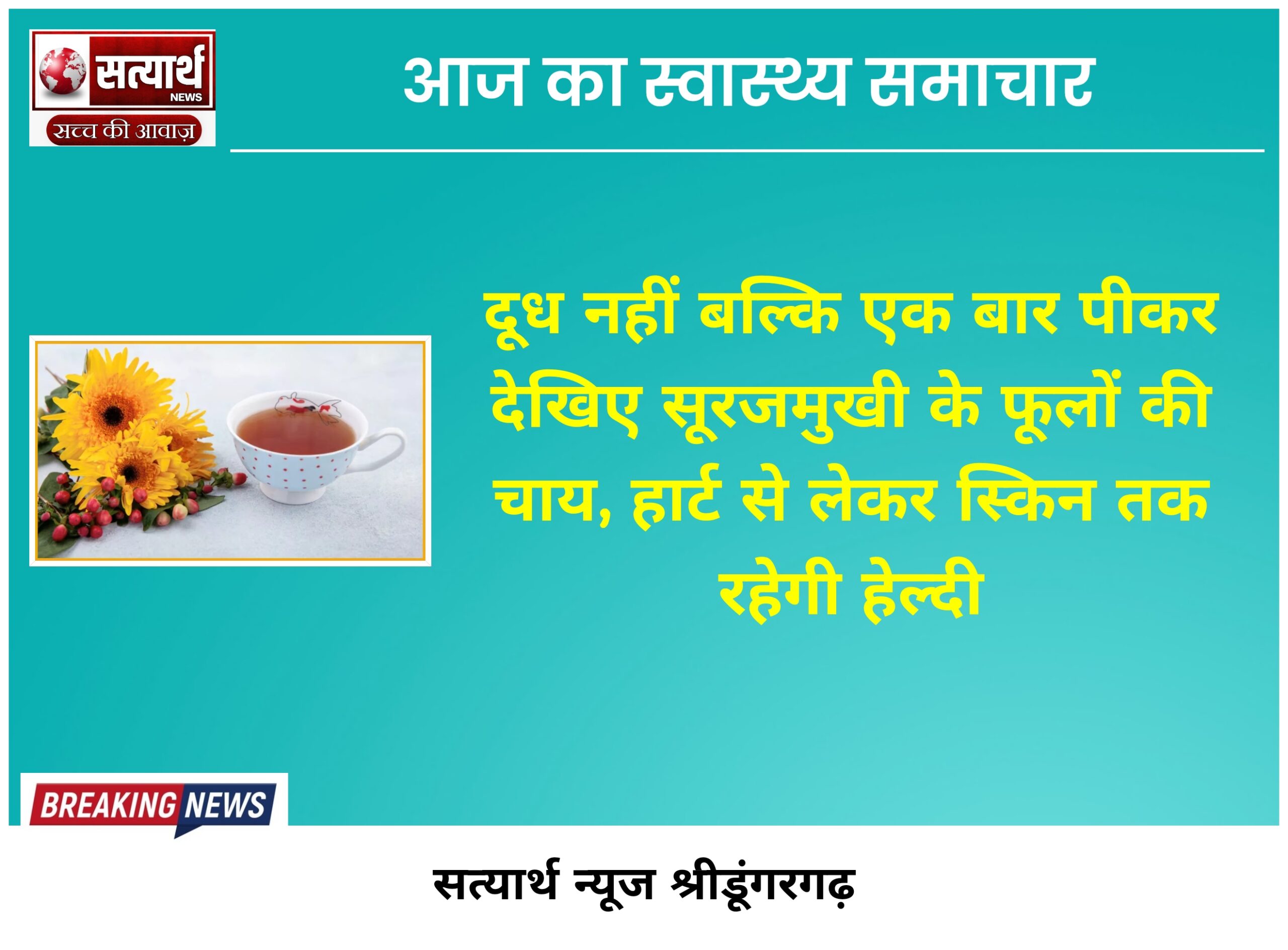सत्यार्थ न्यूज श्रीडूंगरगढ़-सवांददाता मीडिया प्रभारी सेहत के लिए सूरजमुखी के फूलों की चाय फायदेमंद है। यह चाय इम्युनिटी को स्ट्रॉन्ग…