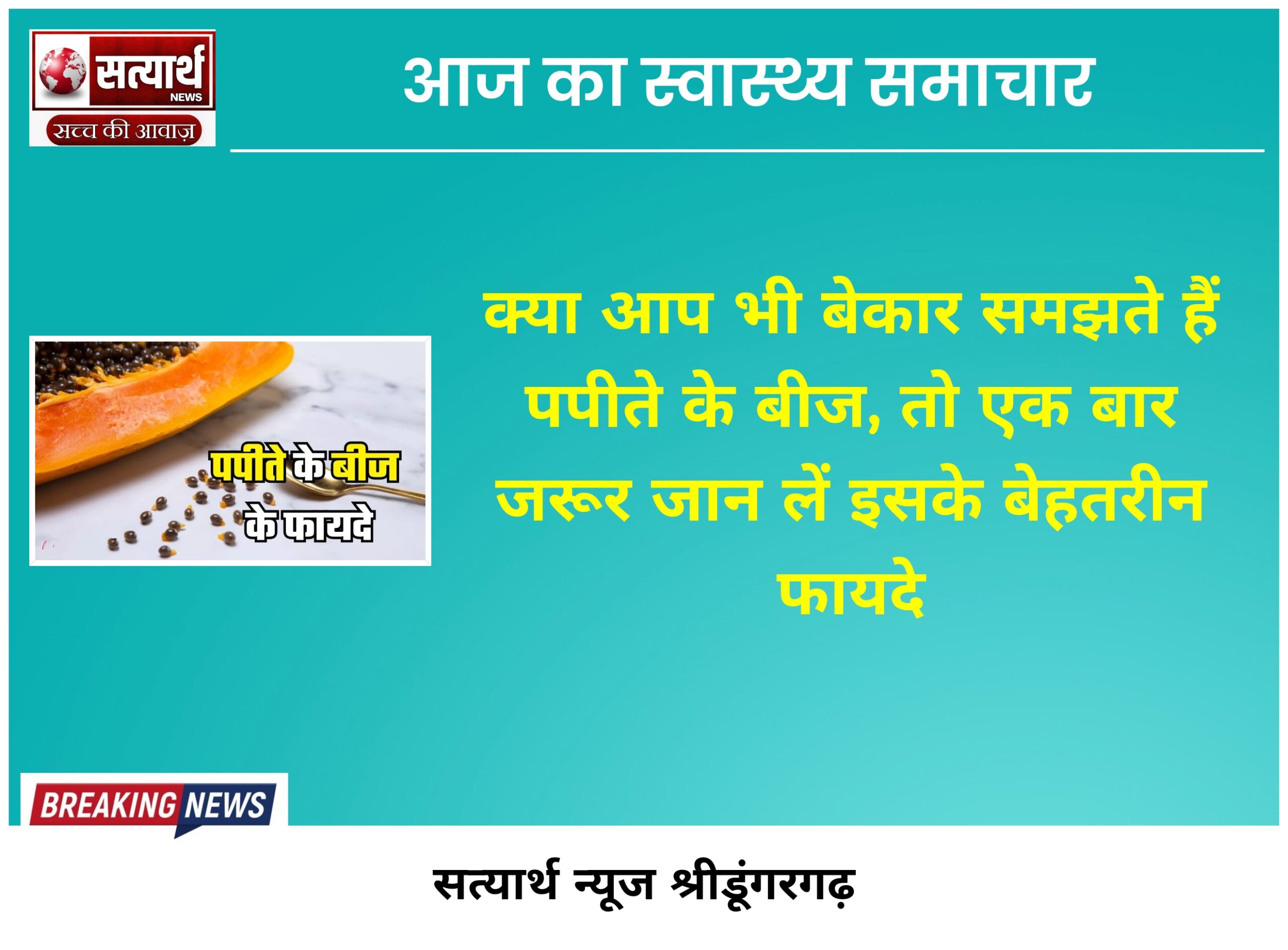 सत्यार्थ न्यूज श्रीडूंगरगढ़-सवांददाता मीडिया प्रभारी अक्सर पपीते के बीजों को बेकार समझकर फेंक दिया जाता है लेकिन क्या आप जानते…