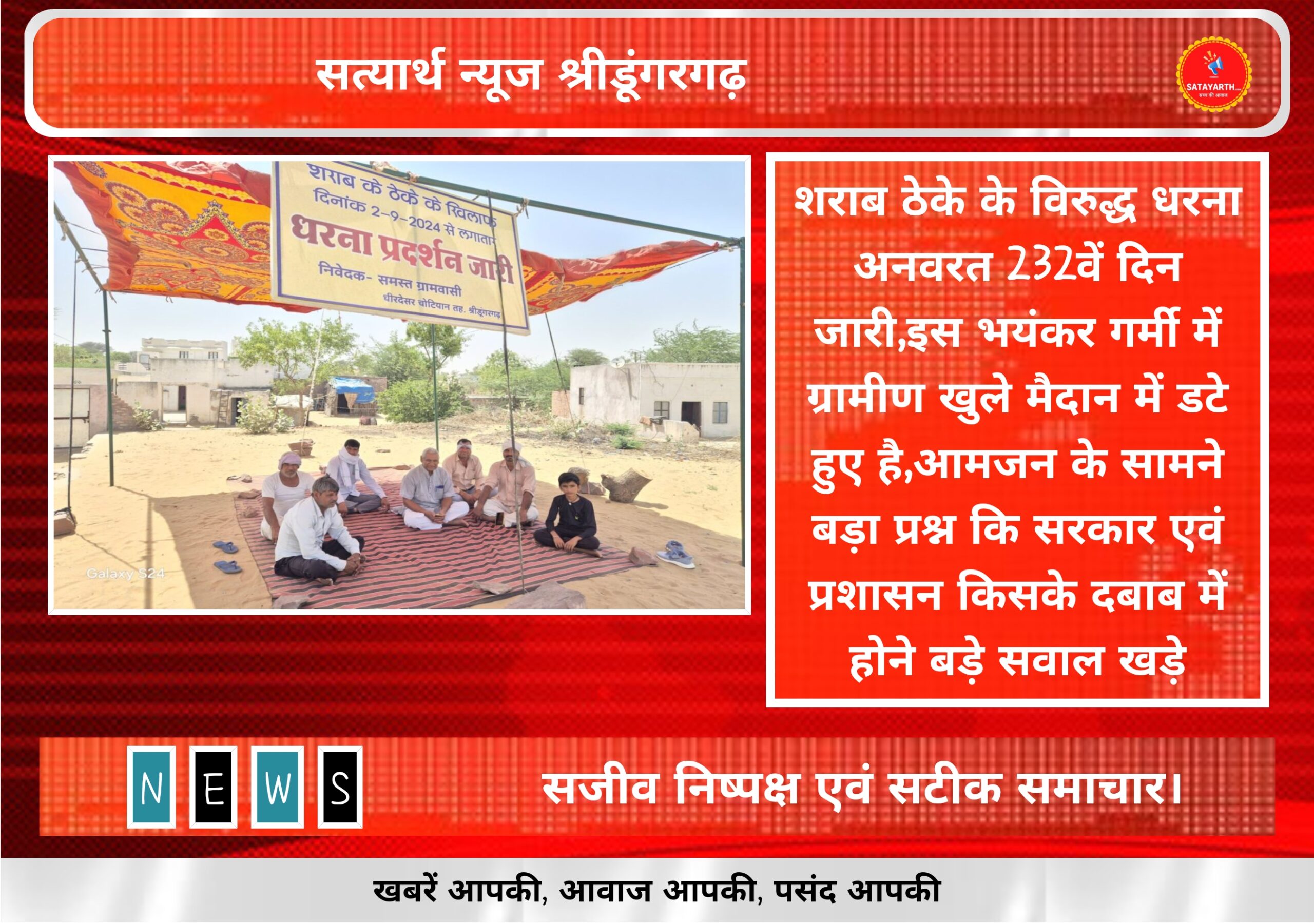 सत्यार्थ न्यूज श्रीडूंगरगढ़ -सवांददाता ब्यूरो चीफ उपखंड के गांव धीरदेसर चोटियन, में शराब ठेका बन्द करने की मांग को लेकर…