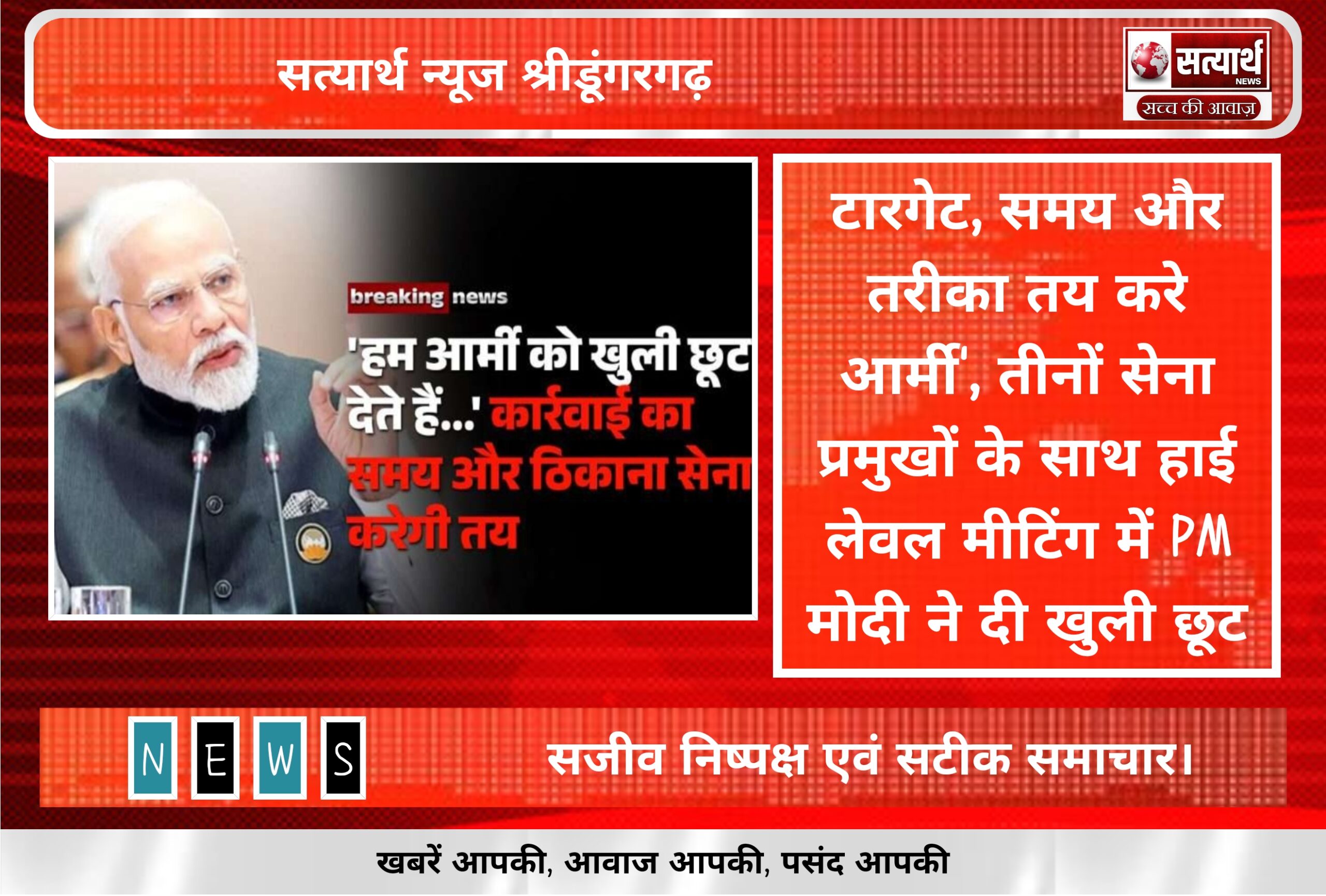 सत्यार्थ न्यूज श्रीडूंगरगढ़-सवांददाता नरसीराम शर्मा सुबह देश राज्यों से बड़ी खबरें *===========================* *पाक की अब खैर नहीं! PM मोदी ने…