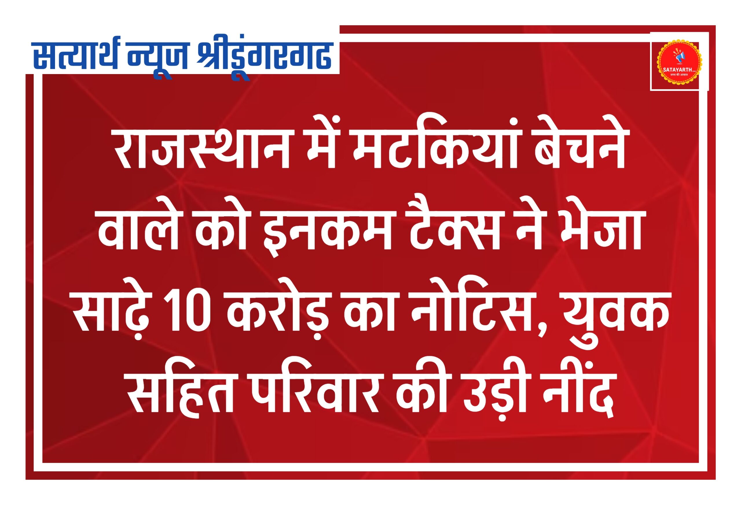 सत्यार्थ न्यूज श्रीडूंगरगढ़-सवांददाता ब्युरो चीफ राजस्थान के बूंदी जिले के झालीजी का बराना निवासी मटकियां बना कर बेचने वाले युवक…