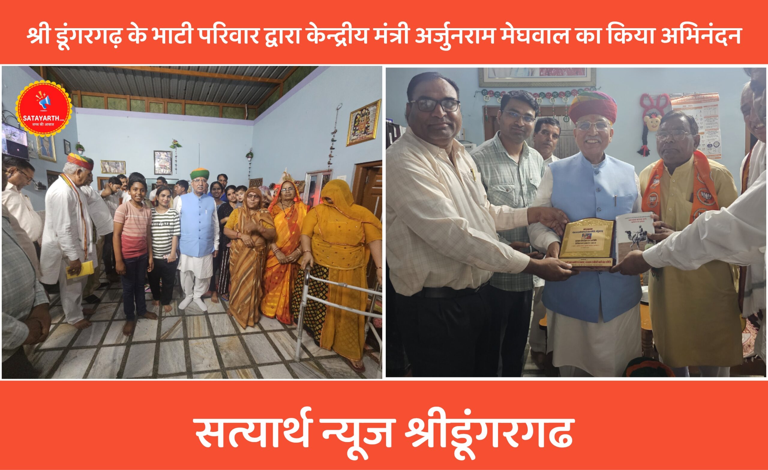 सत्यार्थ न्यूज श्रीडूंगरगढ़-सवांददाता ब्युरो चीफ श्रीडूंगरगढ़ प्रवास के दरमियान केन्द्रीय कानून मंत्री माननीय अर्जुनराम मेघवाल शहर के बिग्गा बास स्थित…
