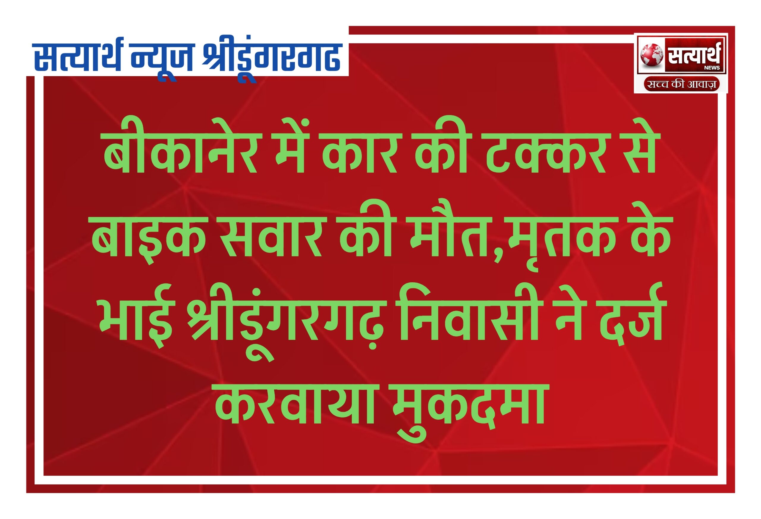 सत्यार्थ न्यूज श्रीडूंगरगढ़ -सवांददाता ब्युरो चीफ जय नारायण व्यास कॉलोनी थाना इलाके में एक कार ने बाइक को चपेट में…