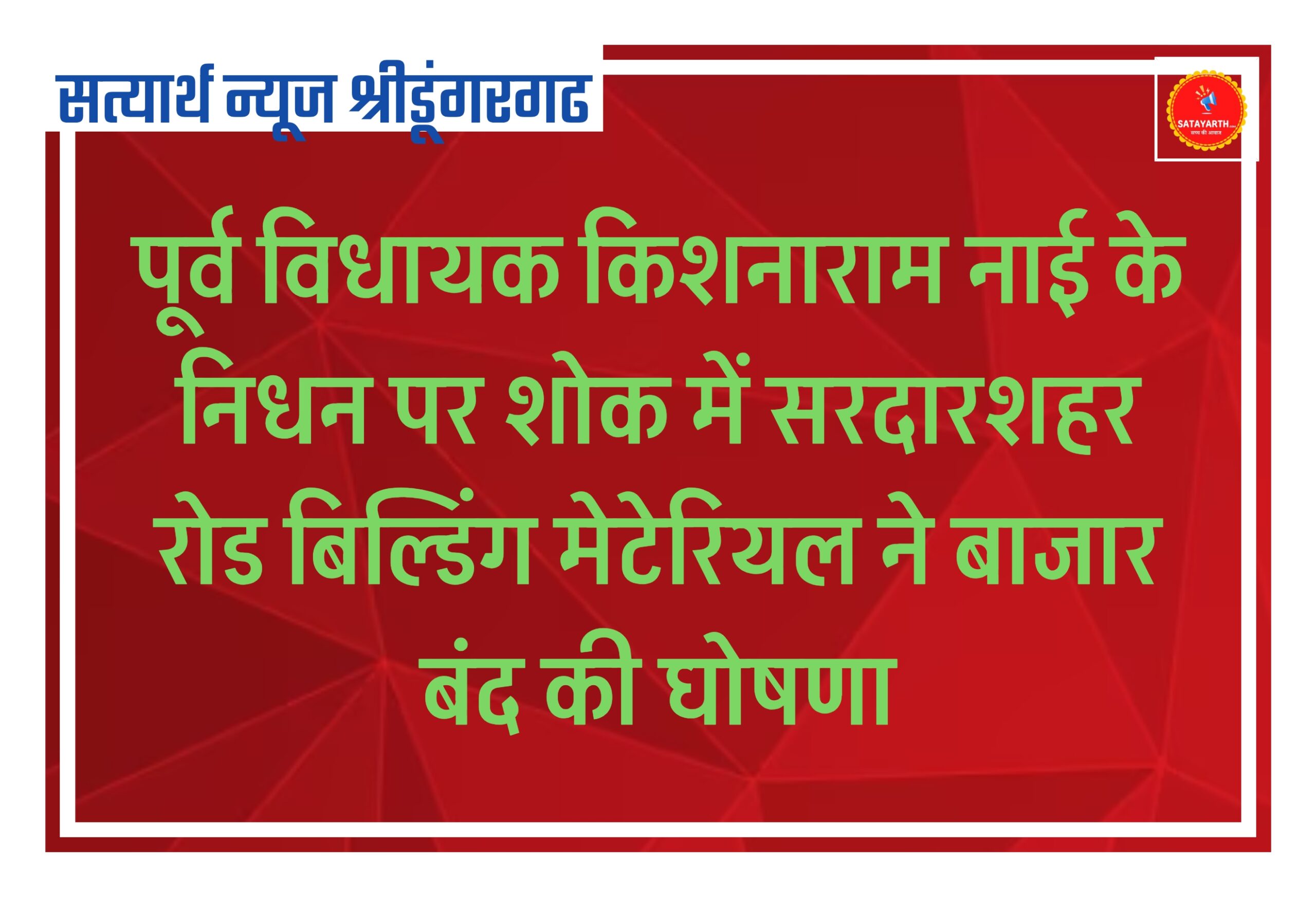 सत्यार्थ न्यूज श्रीडूंगरगढ़-सवांददाता ब्युरो चीफ पूर्व विधायक किशनाराम नाई के निधन के बाद क्षेत्र में शोक की लहर है। श्रद्धांजलि…