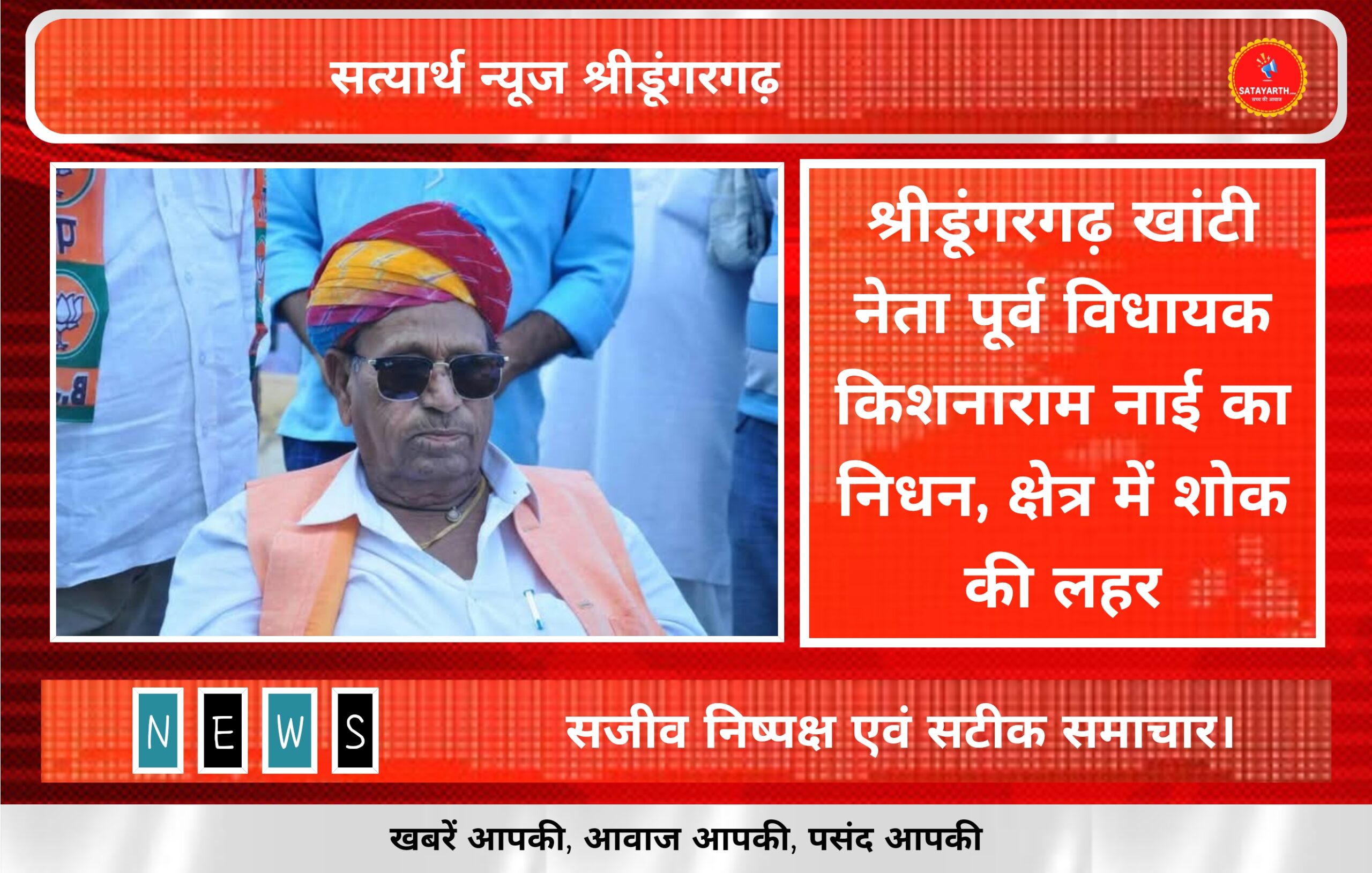सत्यार्थ न्यूज श्रीडूंगरगढ़-सवांददाता ब्यूरो चीफ श्रीडूंगरगढ़ राजनीति के भीष्म पितामह और कद्दावर नेता पुर्व विधायक किशनाराम नाई का सोमवार देर…